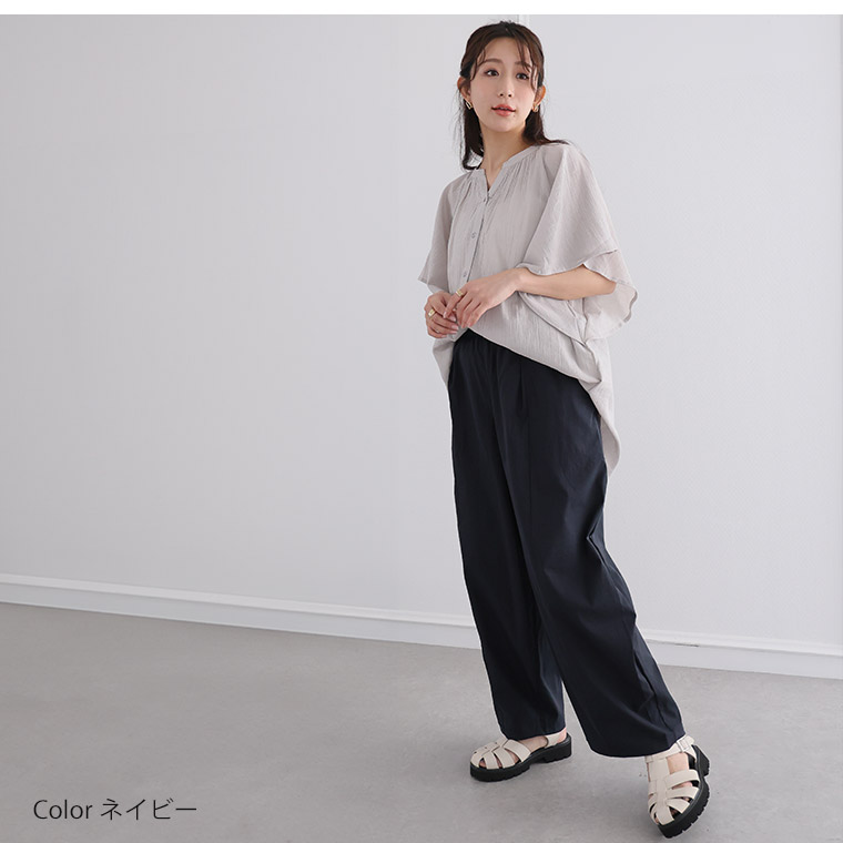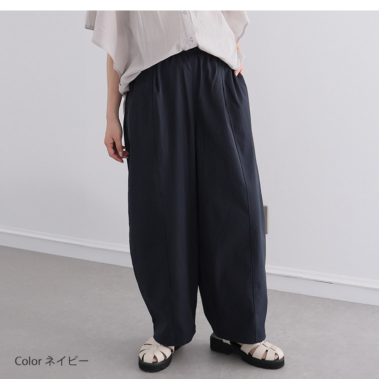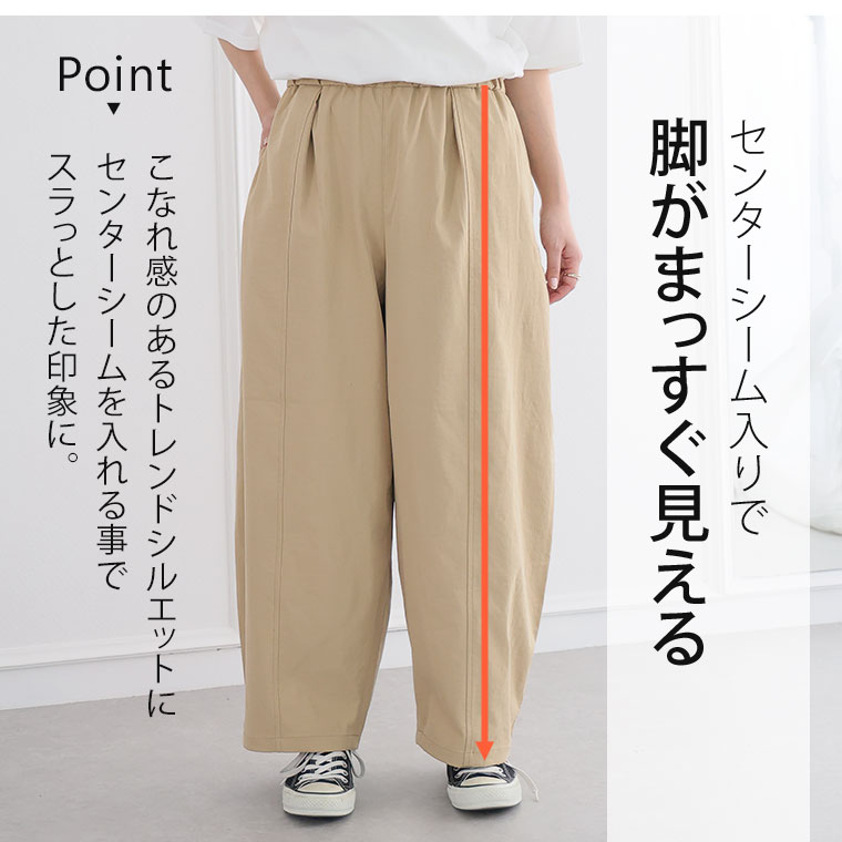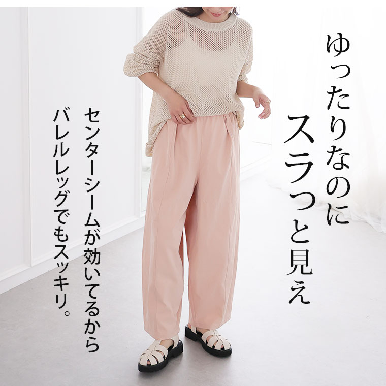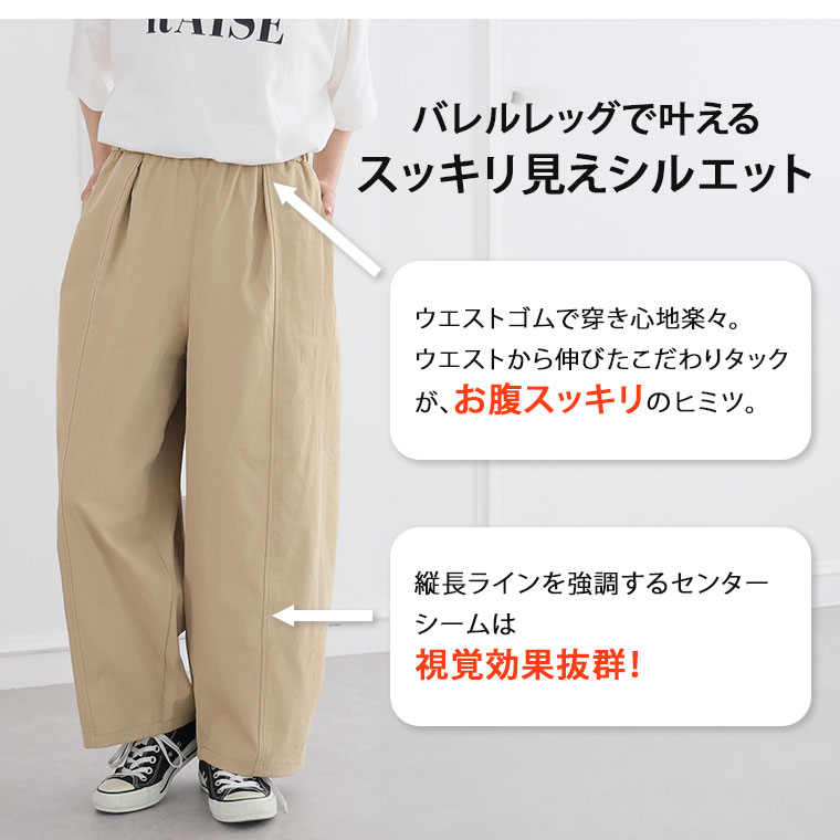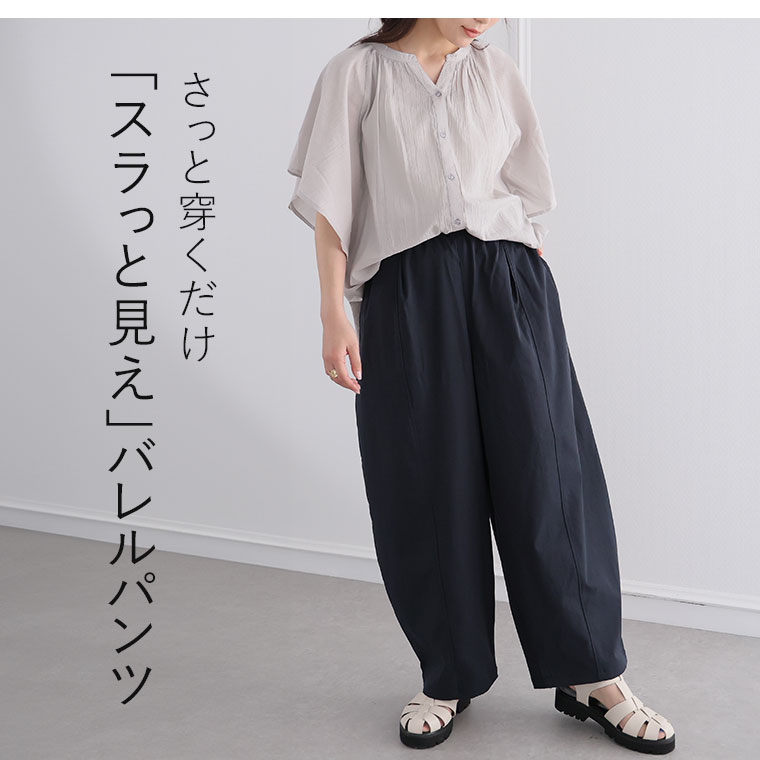 ゆったりなのにスッキリ見えのバレルレッグパンツ