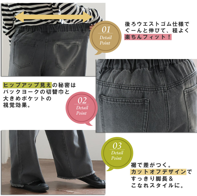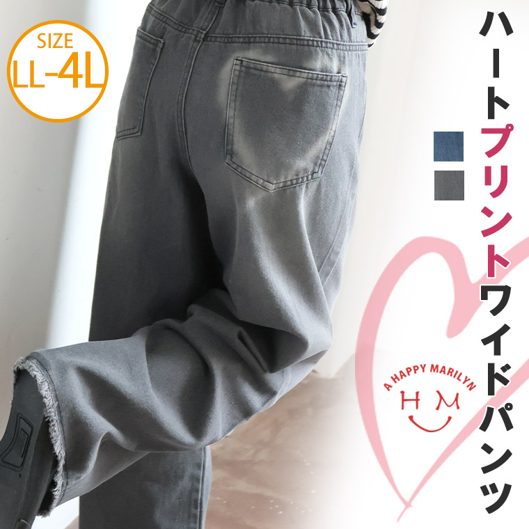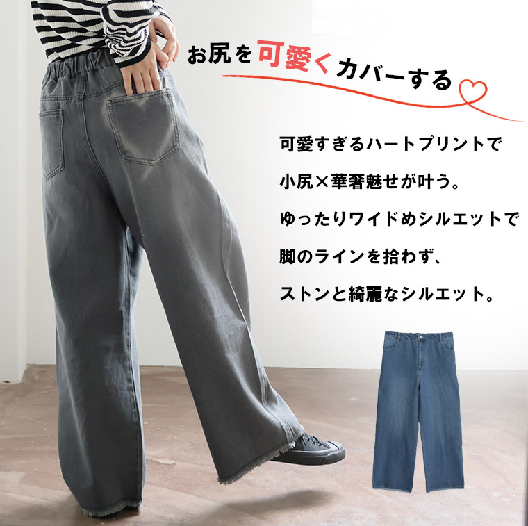 バックポケットにハートプリントが可愛いセミワイドパンツ