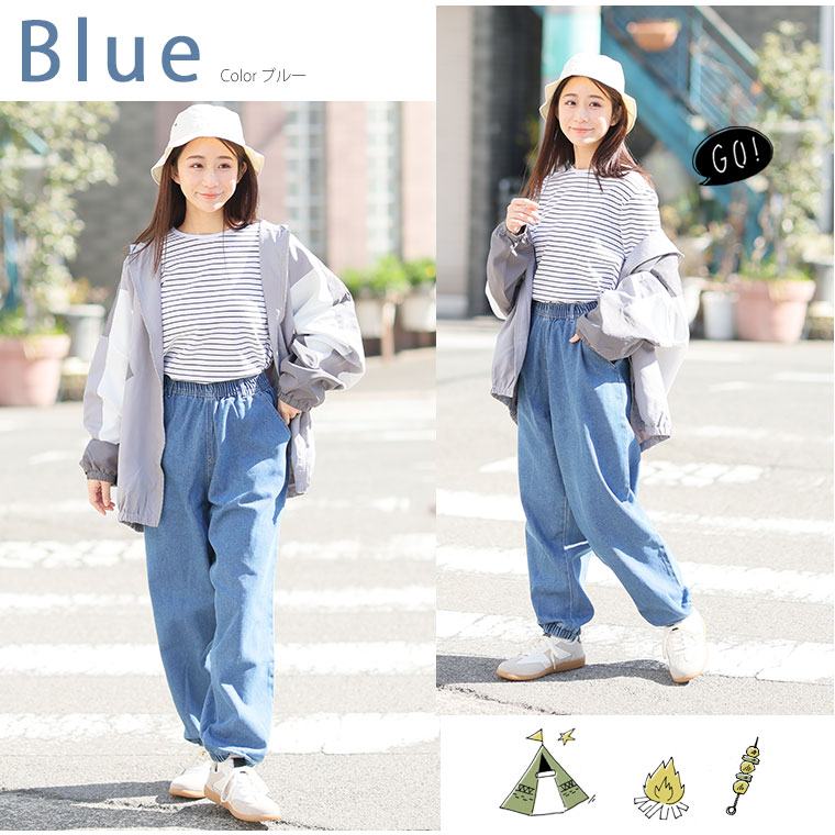 ウエストも裾もゴム仕様!楽ちんだから、アウトドアにもピッタリ♪