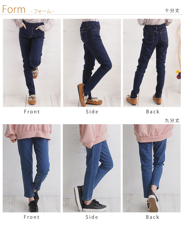 抜群のストレッチ性と裏起毛生地でほっこりあったか。スキニーデニムパンツ 9分丈・9.5分丈・10分丈