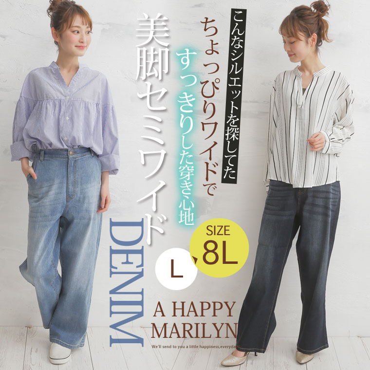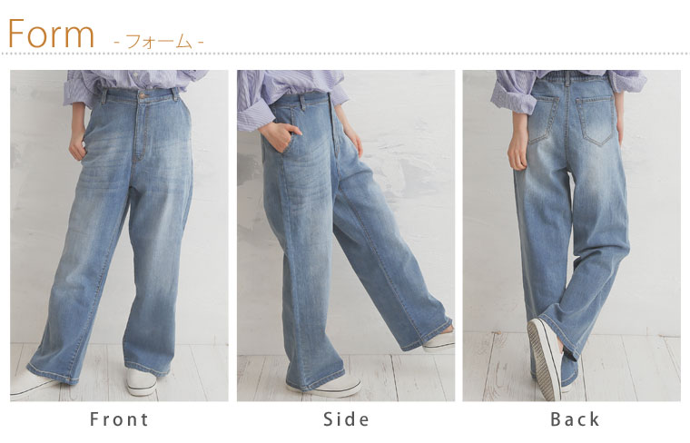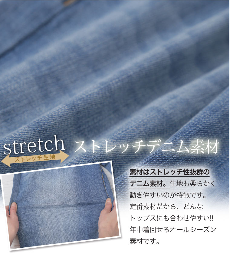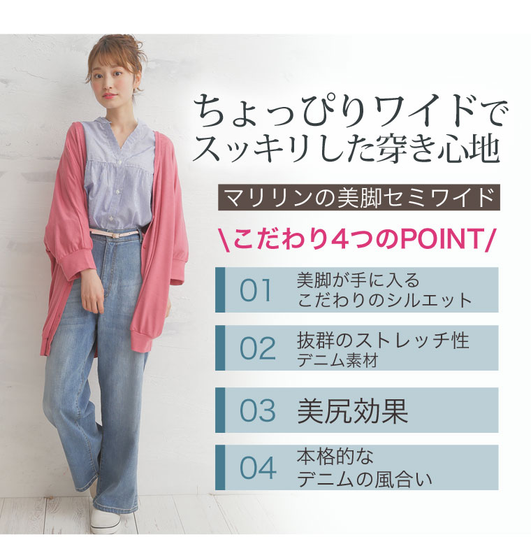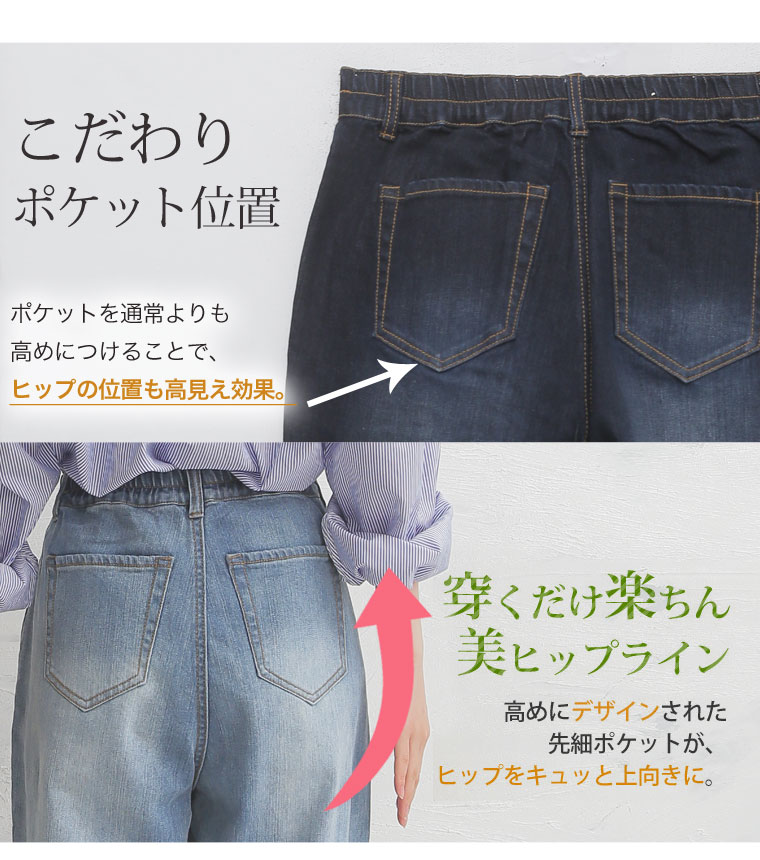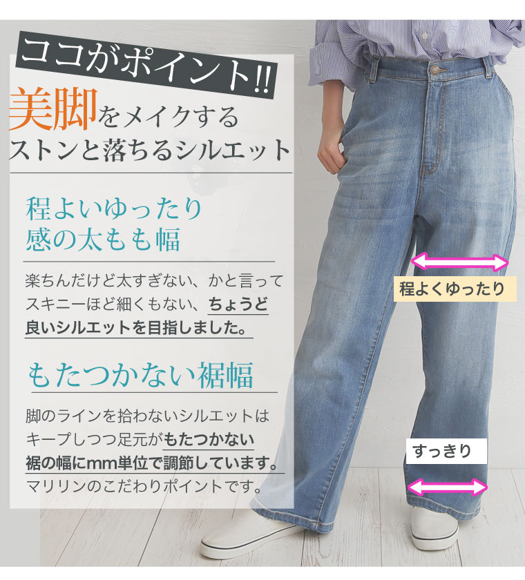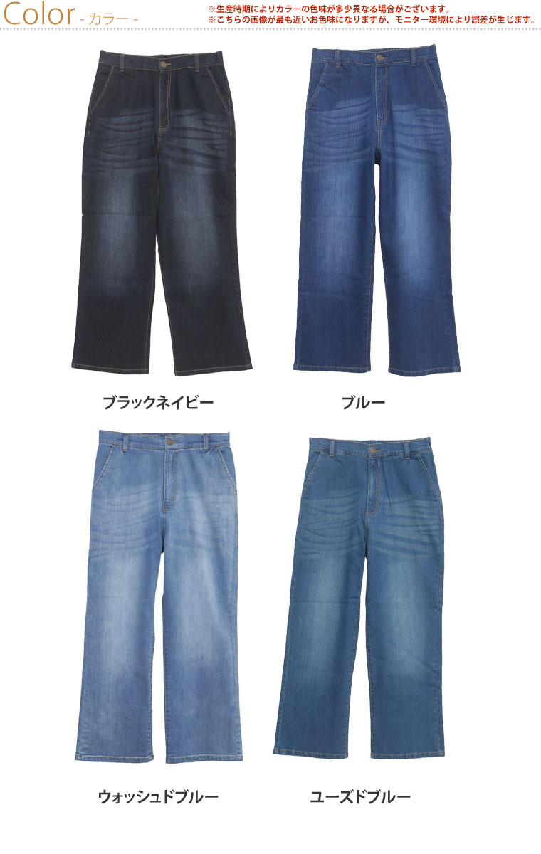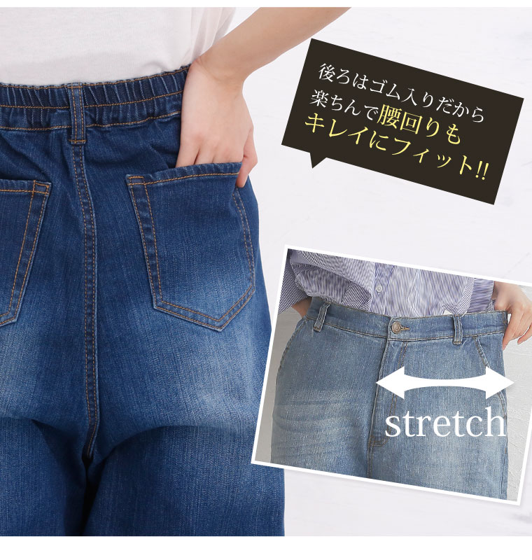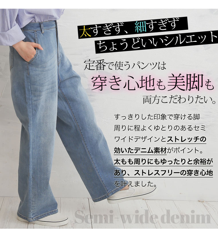 ストレッチ生地で安心の穿き心地♪ゆったりデザインのセミワイドデニムパンツ