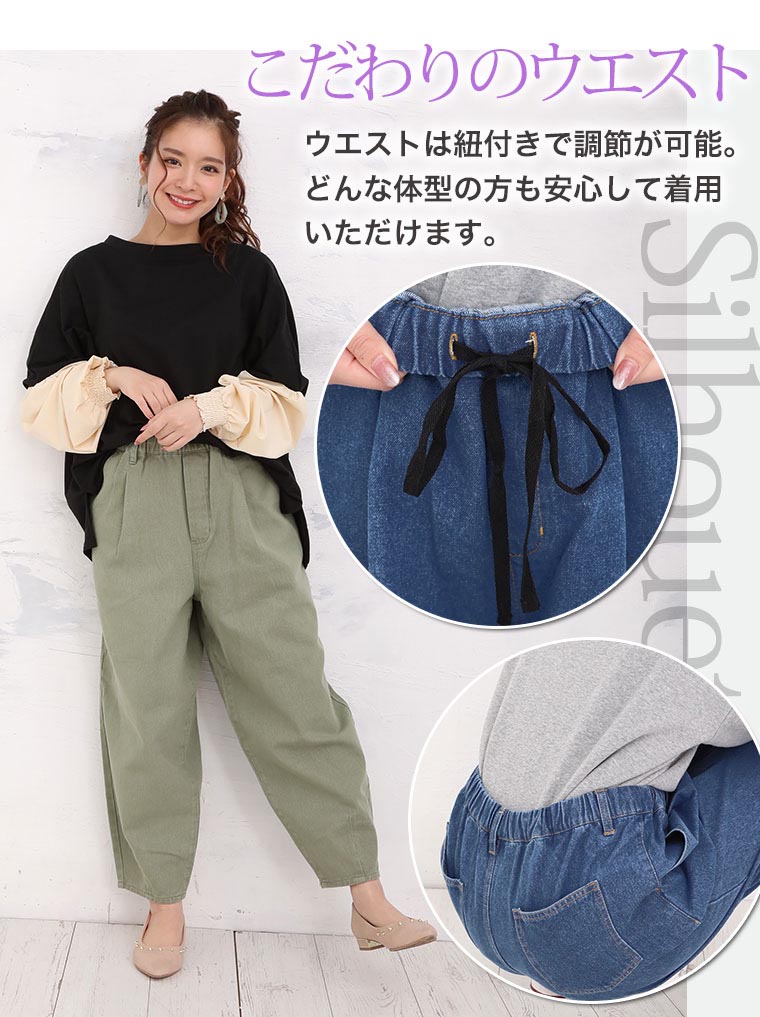 腰周りゆったりスラウチデニムパンツ