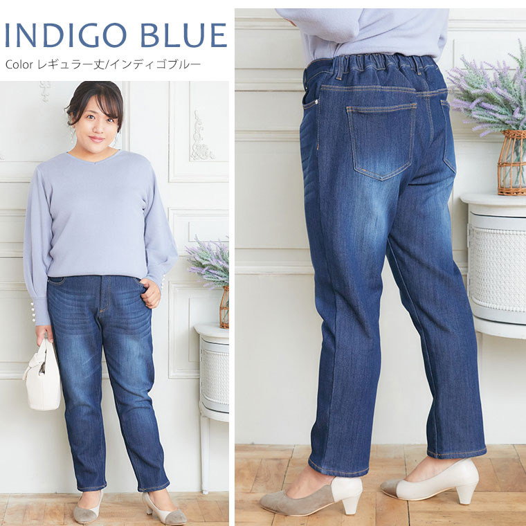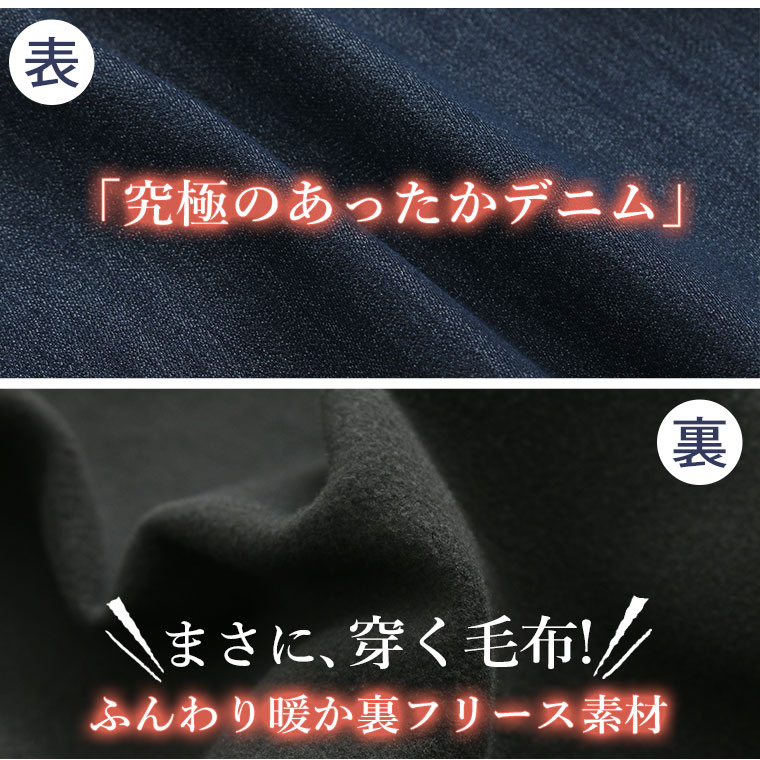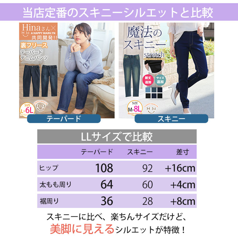 大きいサイズ 【Hinaさんコラボ】 防寒暖か 裏フリース テーパードデニムパンツ【ストレッチ】【骨格ウェーブ】 【骨格ストレート】 【骨格ナチュラル】