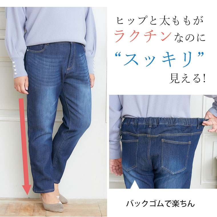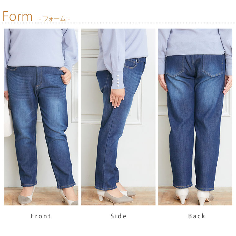 3. 大きいサイズ 【Hinaさんコラボ】 防寒暖か 裏フリース テーパードデニムパンツ【ストレッチ】【骨格ウェーブ】 【骨格ストレート】 【骨格ナチュラル】