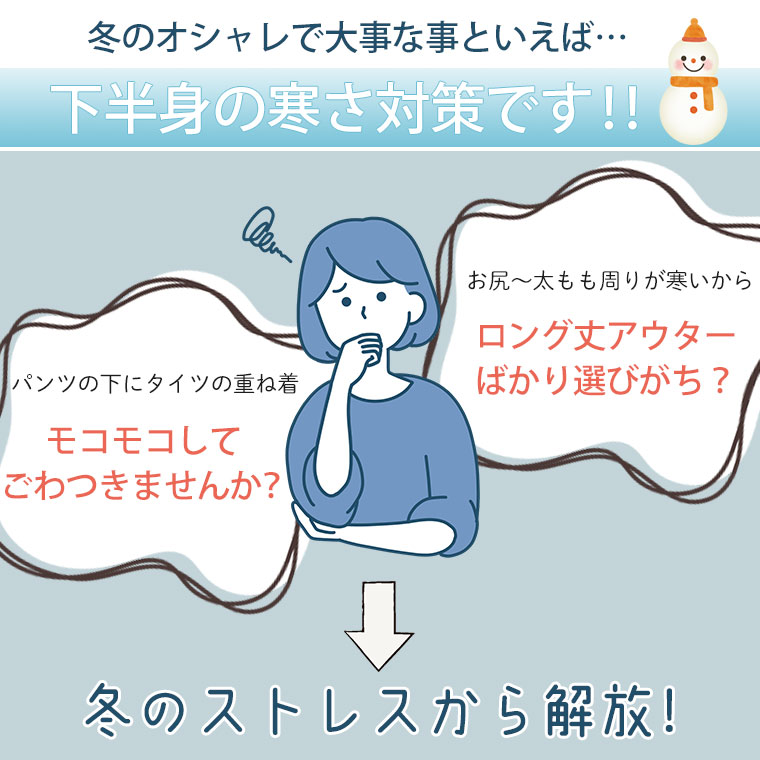 暖かく、155センチと小柄な私にはショート丈が裾上げせずぴったりで良かった。ウエストの後ろがゴムなのも快適で良い!