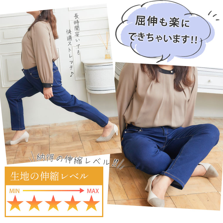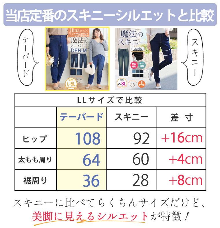 大きいサイズ 【Hinaさんコラボ】 魔法の テーパードデニムパンツ【ストレッチ】【骨格ウェーブ】 【骨格ストレート】 【骨格ナチュラル】