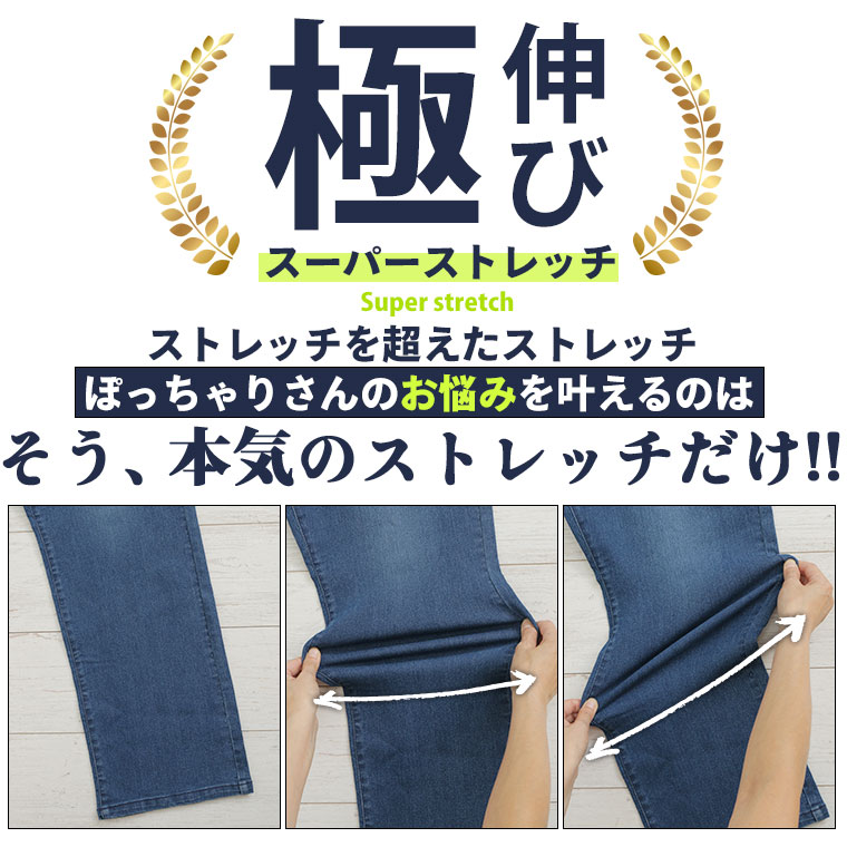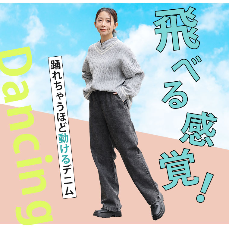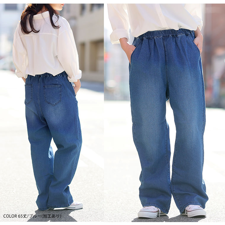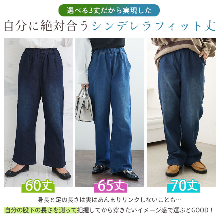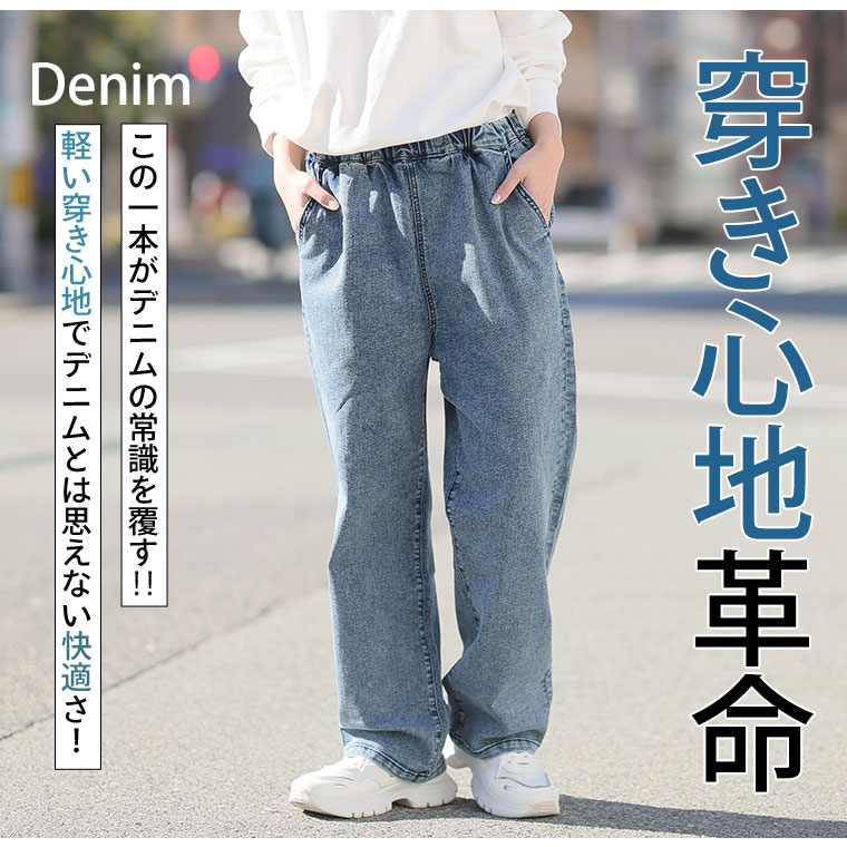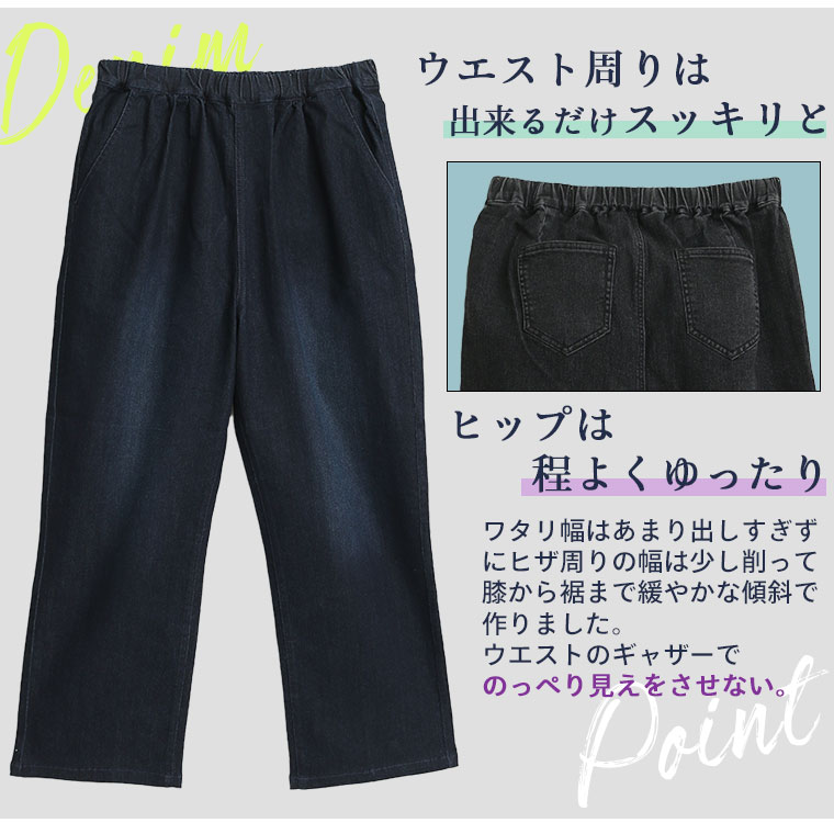 「極み」ストレッチですとんとすっきりデニムワイドパンツ