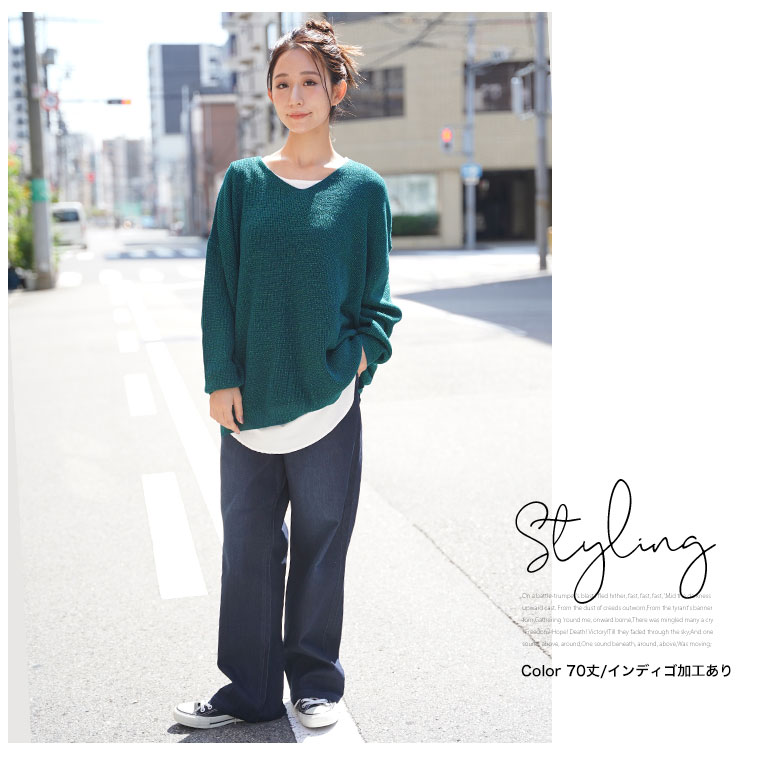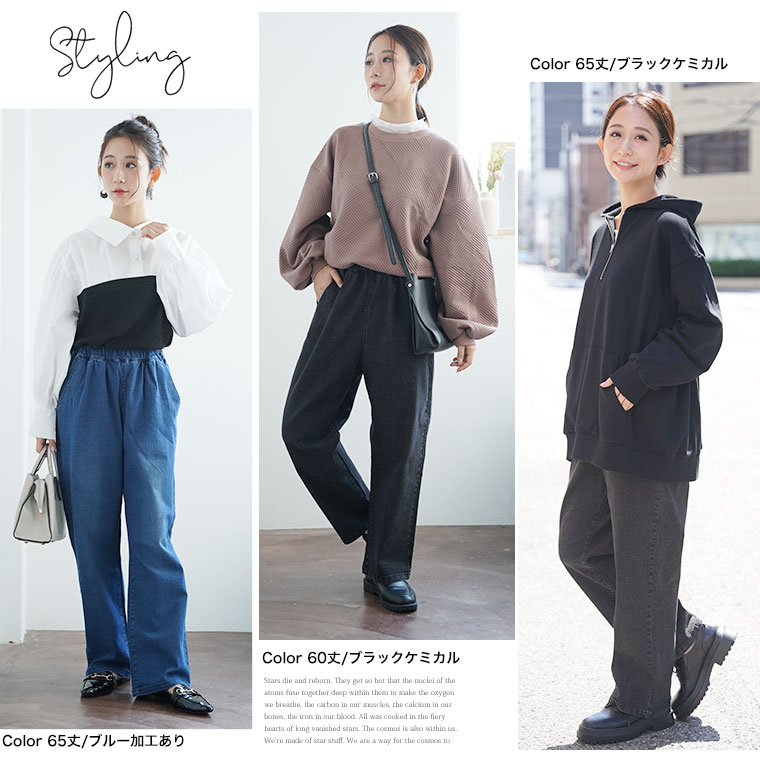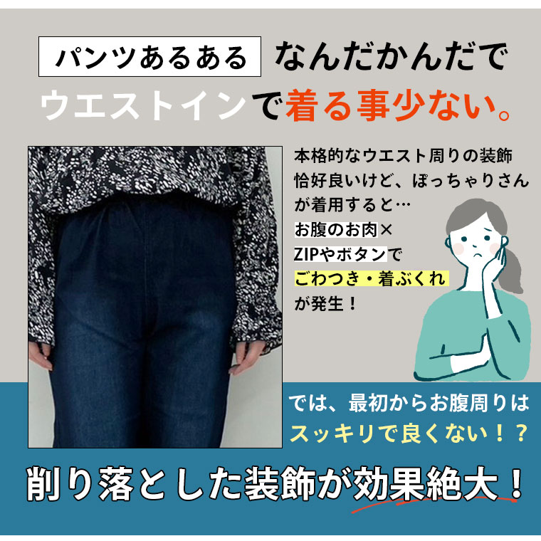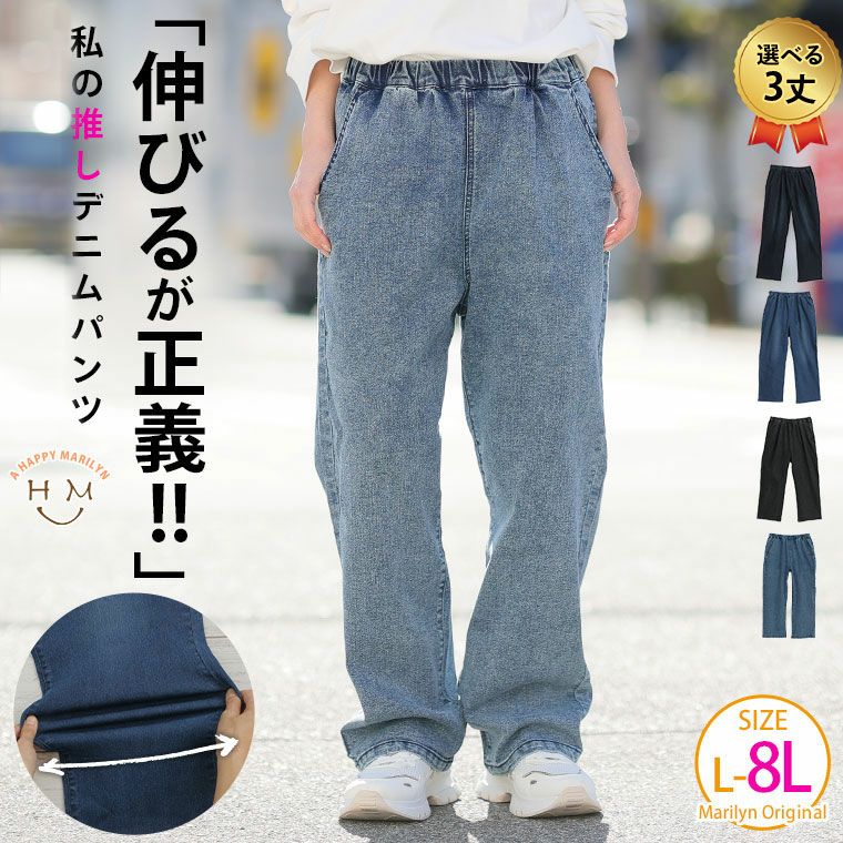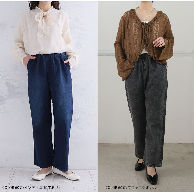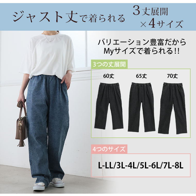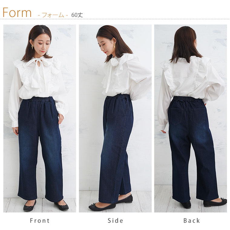 「極み」ストレッチですとんとすっきりデニムワイドパンツ