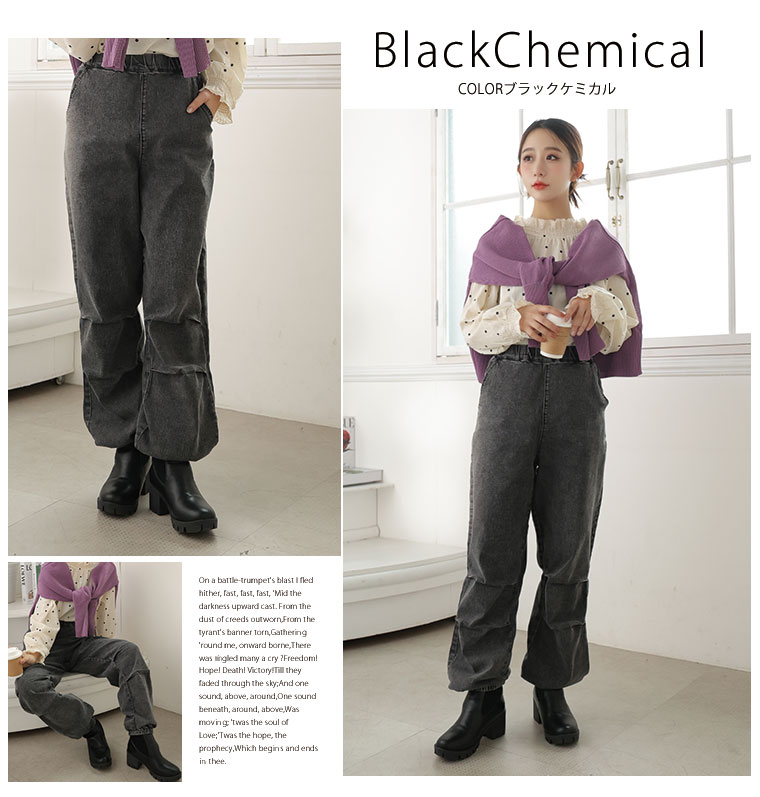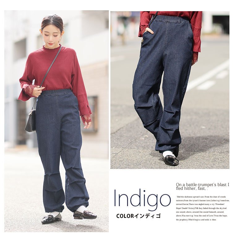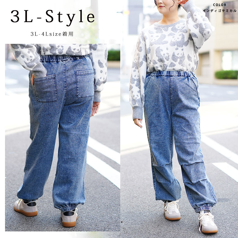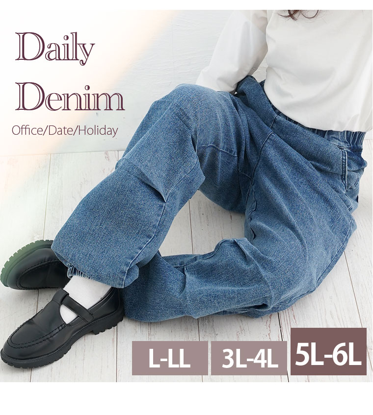 3. 大きいサイズ 超ストレッチ!! レッグラインを拾わない パラシュート デニムパンツ【ウェストゴム】【ストレッチ】