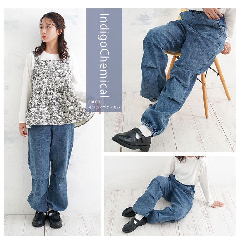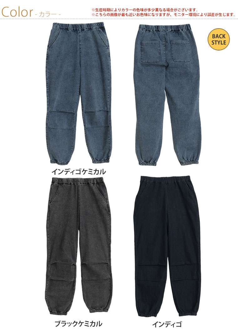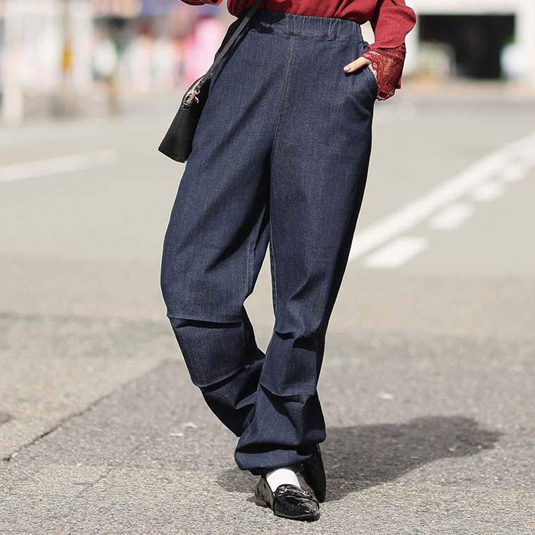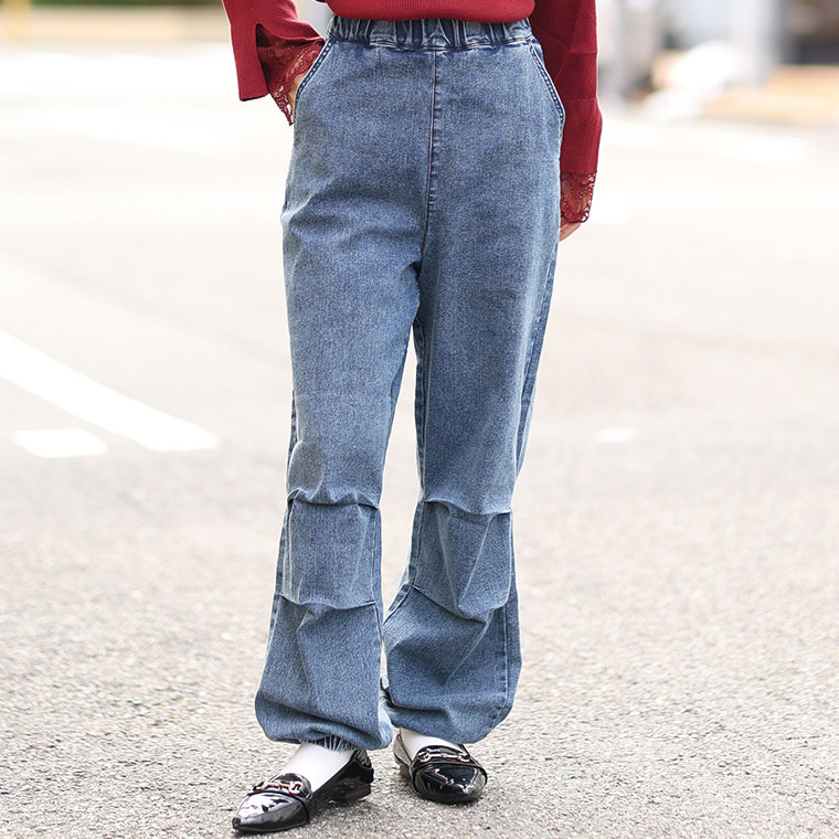 4. 大きいサイズ 超ストレッチ!! レッグラインを拾わない パラシュート デニムパンツ【ウェストゴム】【ストレッチ】