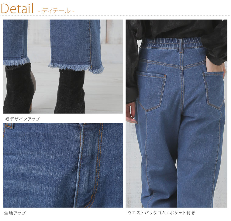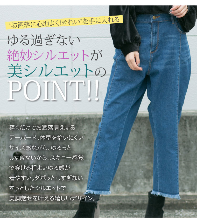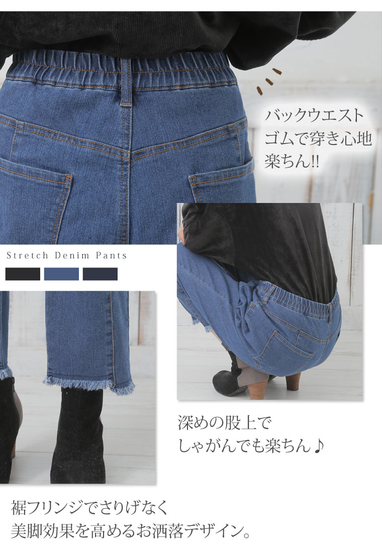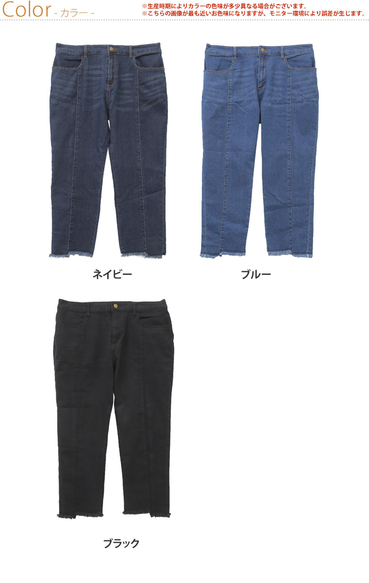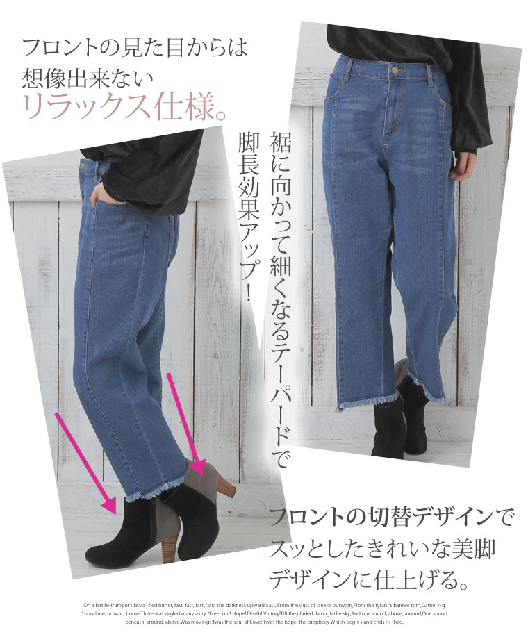 切替デザインで足元スッキリ!!ストレッチデニムテーパードパンツ