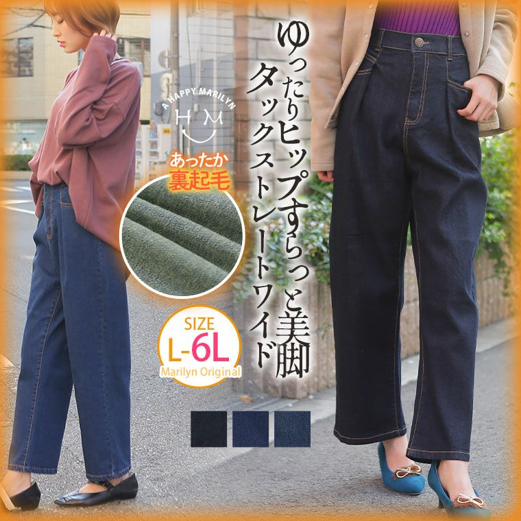 オリジナル ボトムス ルーズパンツ LL 3L 4L 5L 6L 夏 夏物 夏服 夏用 ぽっちゃり ゆったり お腹 太もも お尻 腰周り カジュアル マリリンオリジナル 選べる2丈 軽くてなめらか! さらり心地よい テンセルデニムワイドパンツ | 大きいサイズの通販ならハッピーマリリン
