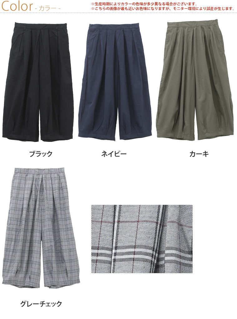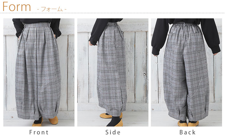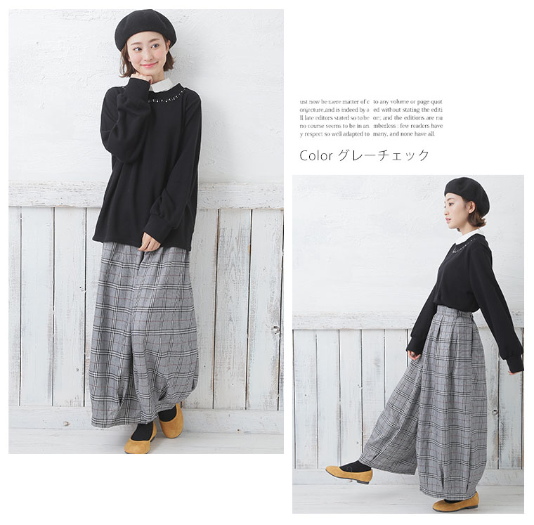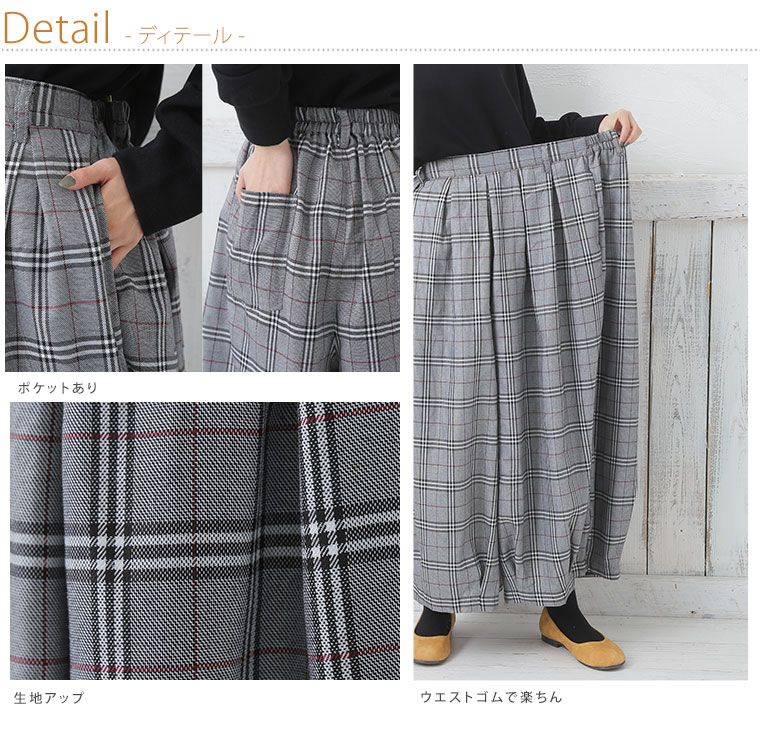 無地とチェックから選べるゆったり着られて程よくフィットするワイドパンツ