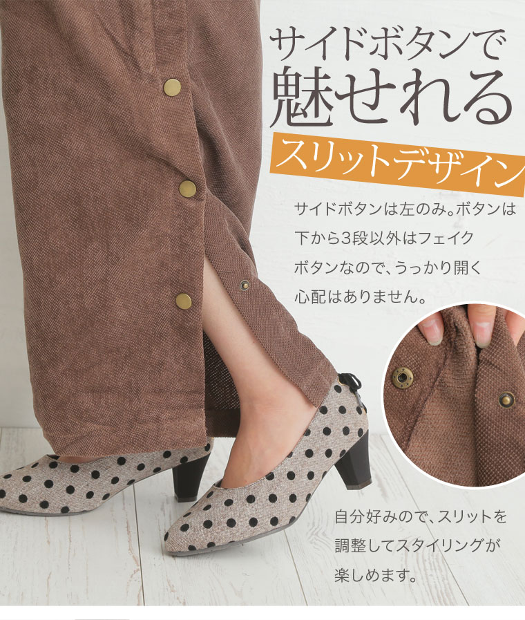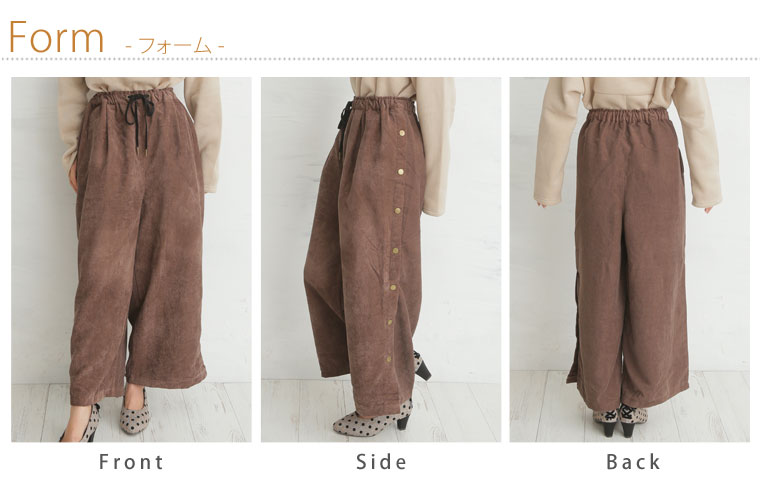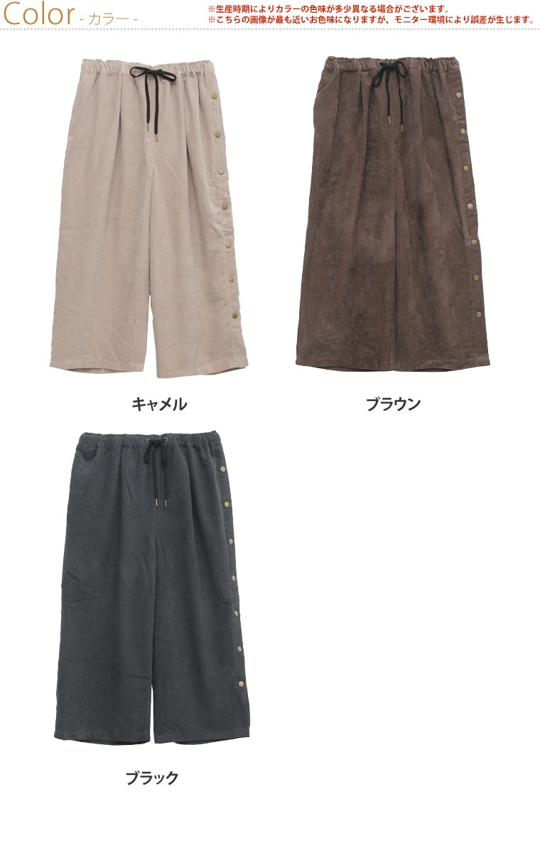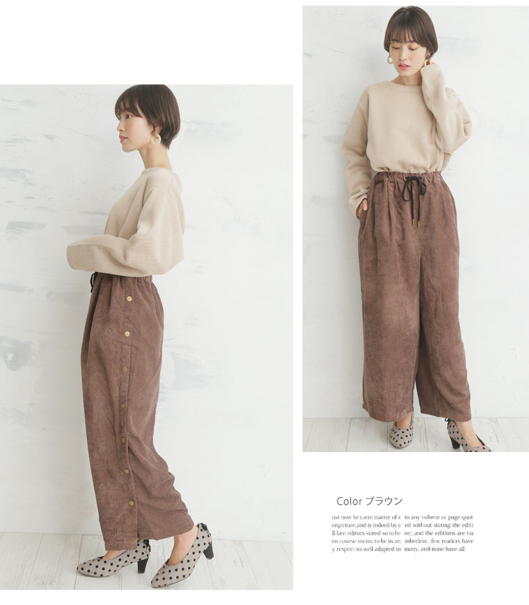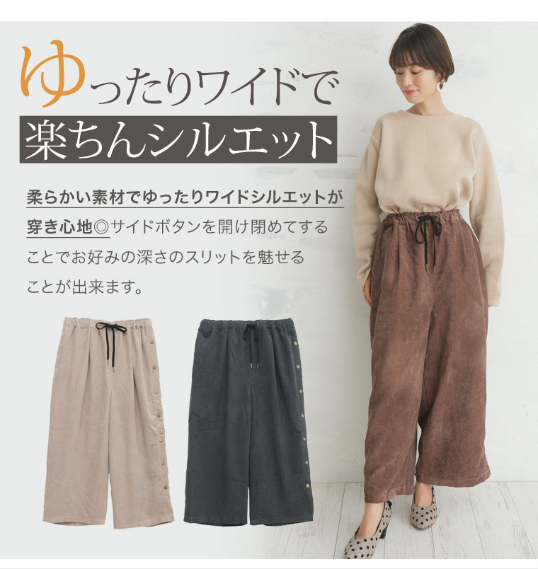 サイドボタンデザインで個性派スタイル!!ゆったりワイドパンツ