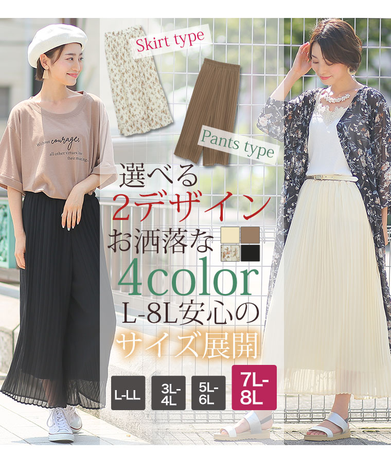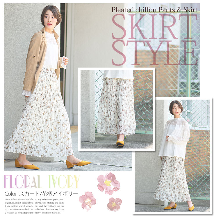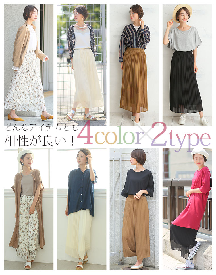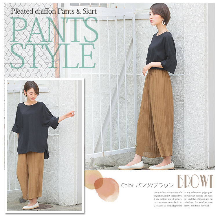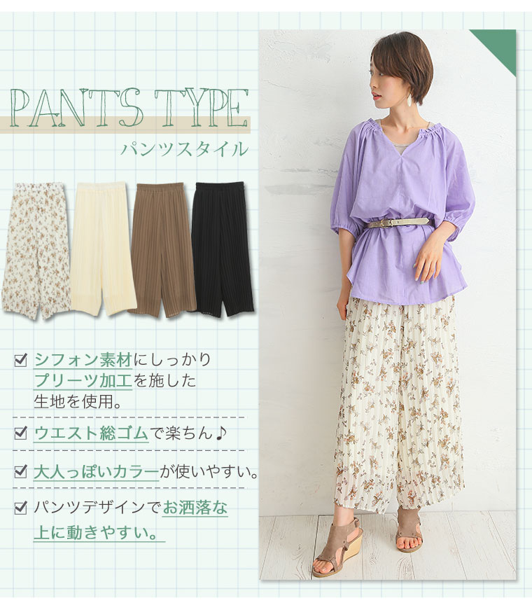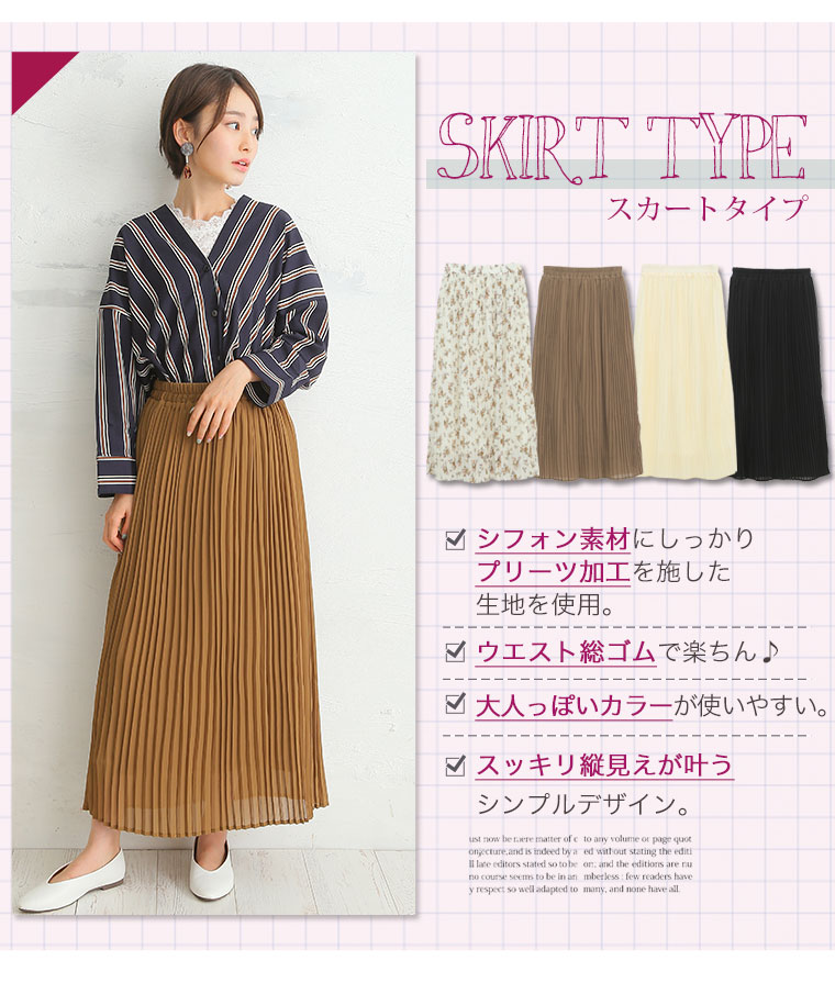 2TYPEから選べる!!繊細なプリーツ加工で大人っぽくシフォンパンツ・スカート