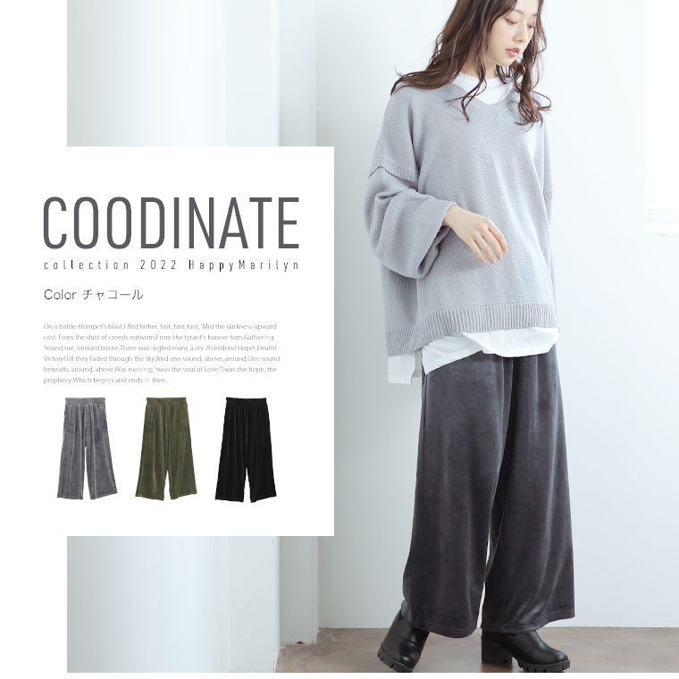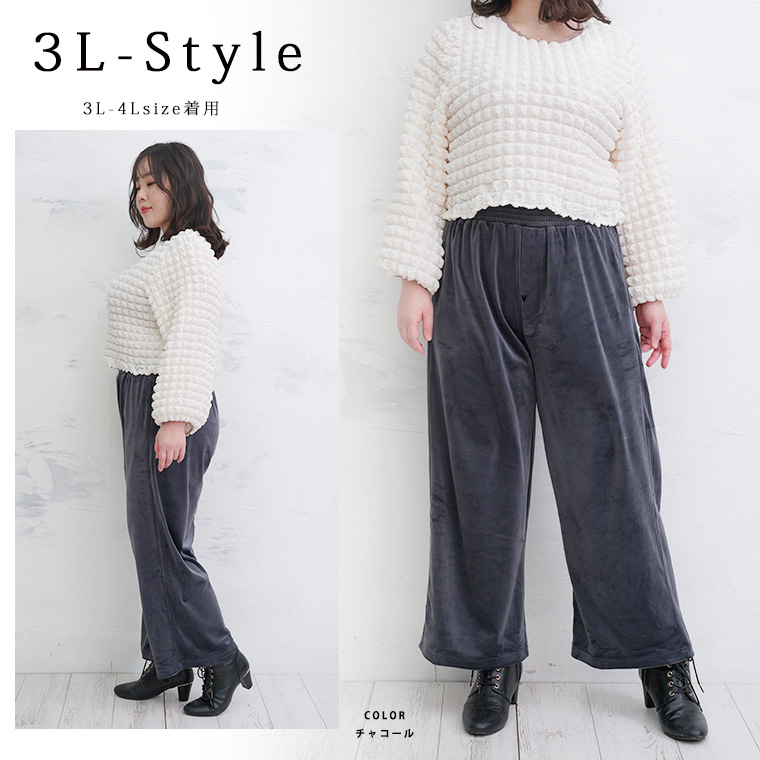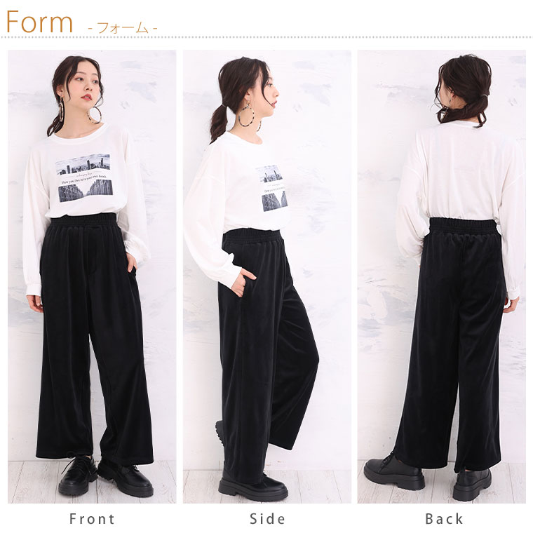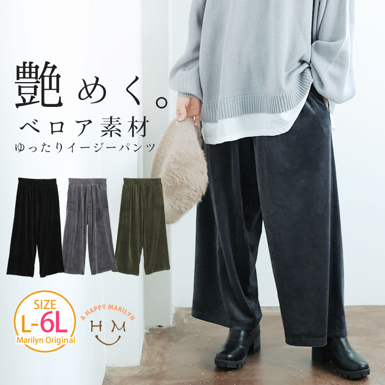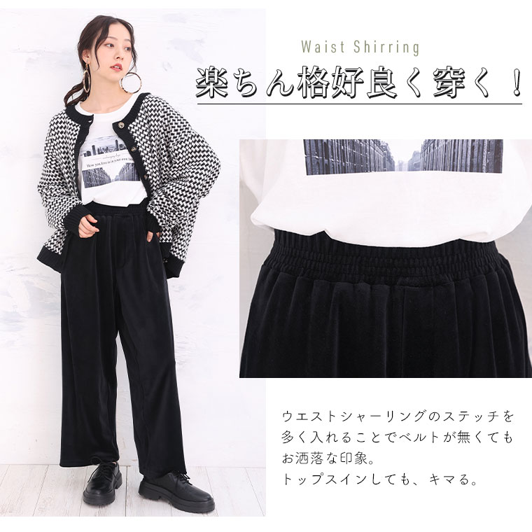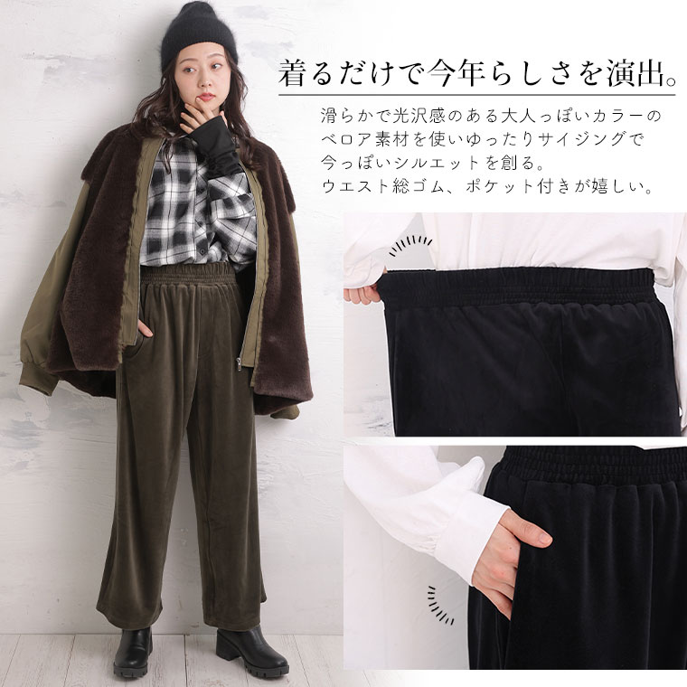 ゆったりのびる!ベロア素材の楽ちんパンツ