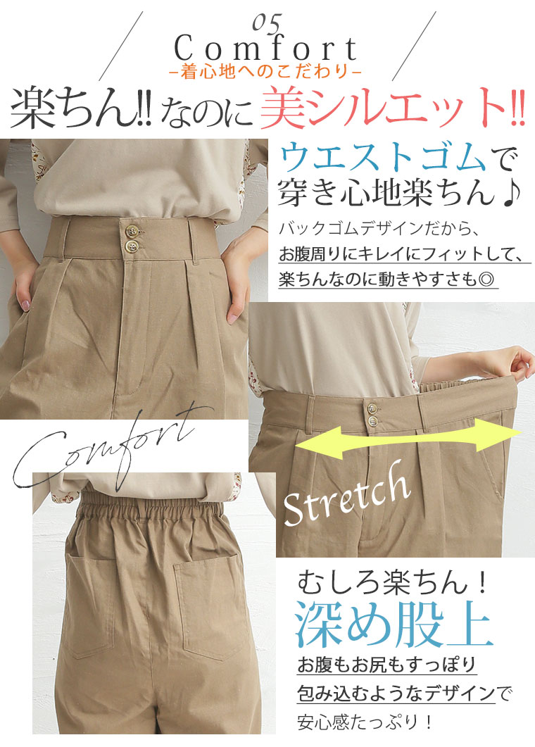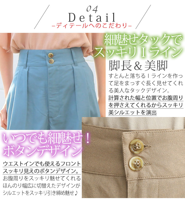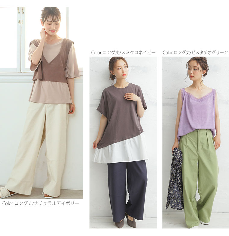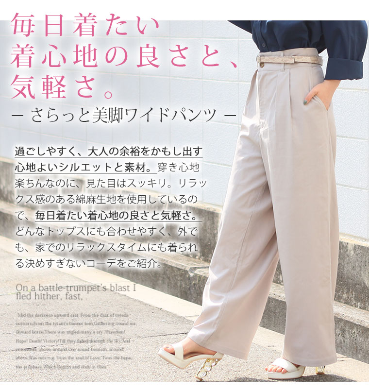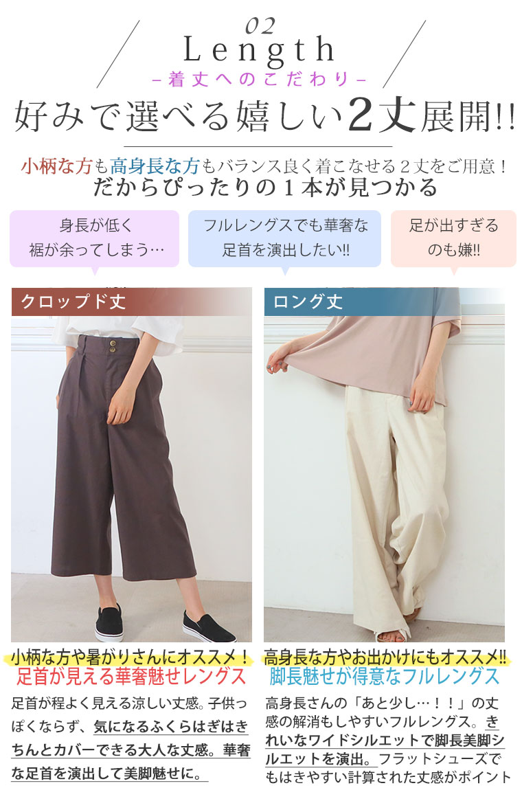 さらり心地よい嬉しい2丈!いつだって楽ちん美脚の綿麻ワイドパンツ