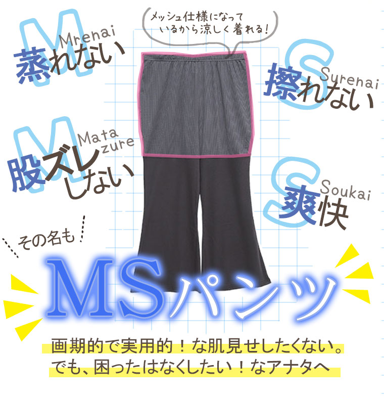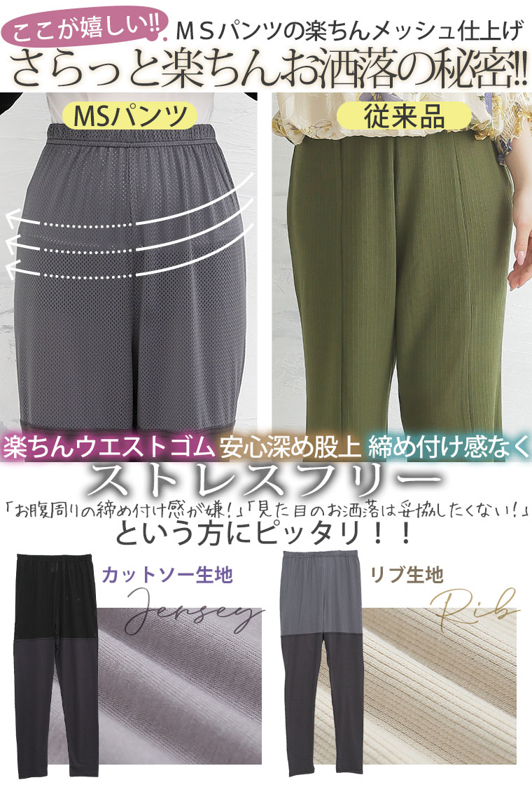 リブとカットソーで選べるこっそりメッシュで楽ちんMSパンツ"ワイド"セミワイド"