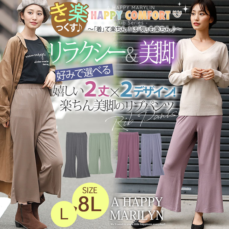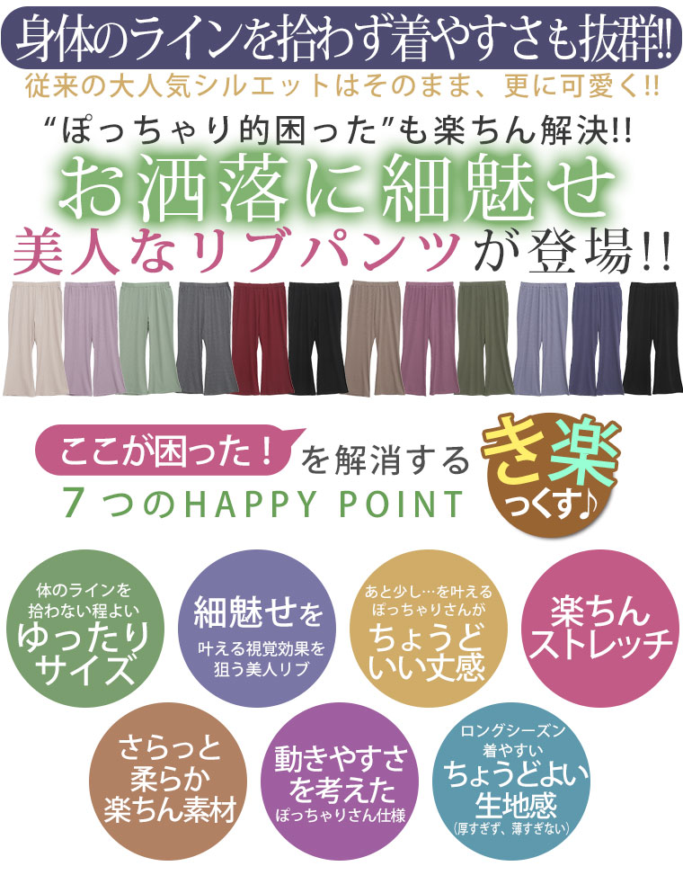 オリジナル ボトムス セミワイド LL 3L 4L 5L 6L 7L 8L 秋 秋物 秋冬 ぽっちゃり ゆったり お腹 お尻 腰周り 【ストレッチ】【ウェストゴム】 選べる2丈&2素材 ゆったりなのに細魅せ! き楽っくす リブ セミワイドパンツ
