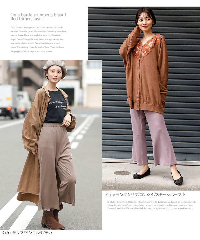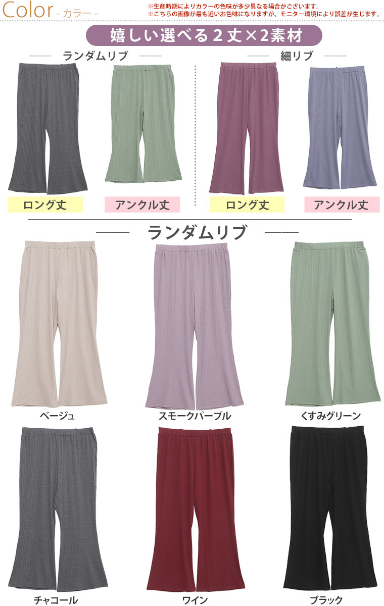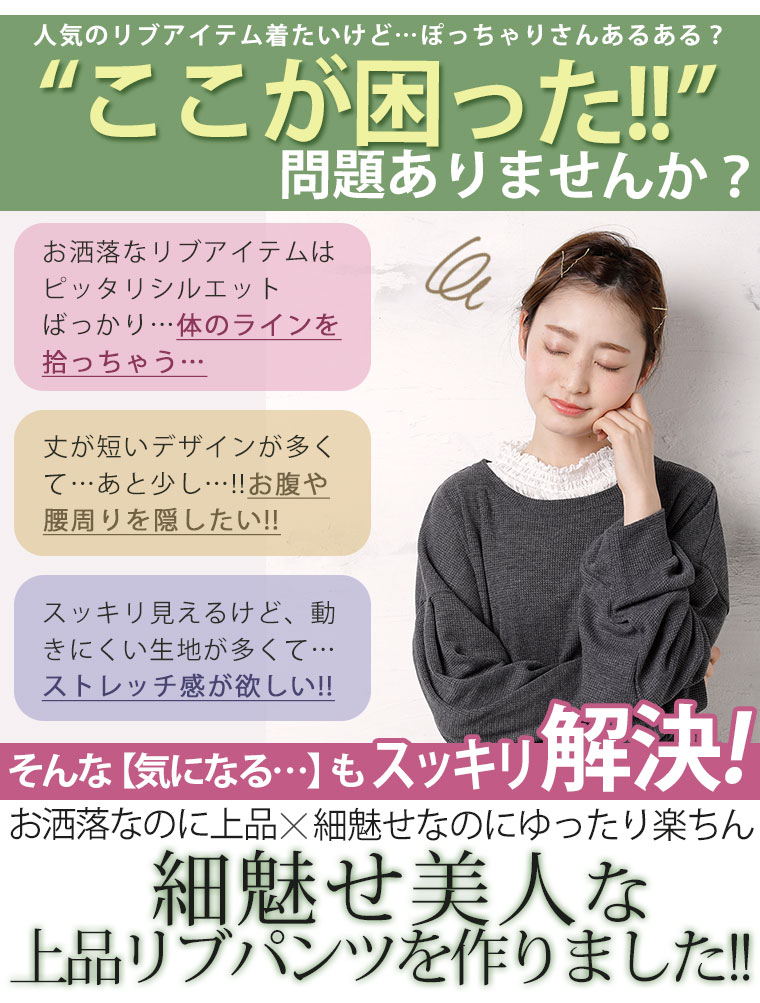 リラクシー&美脚!好みで選べる2丈&2素材 楽ちん美脚のリブパンツ