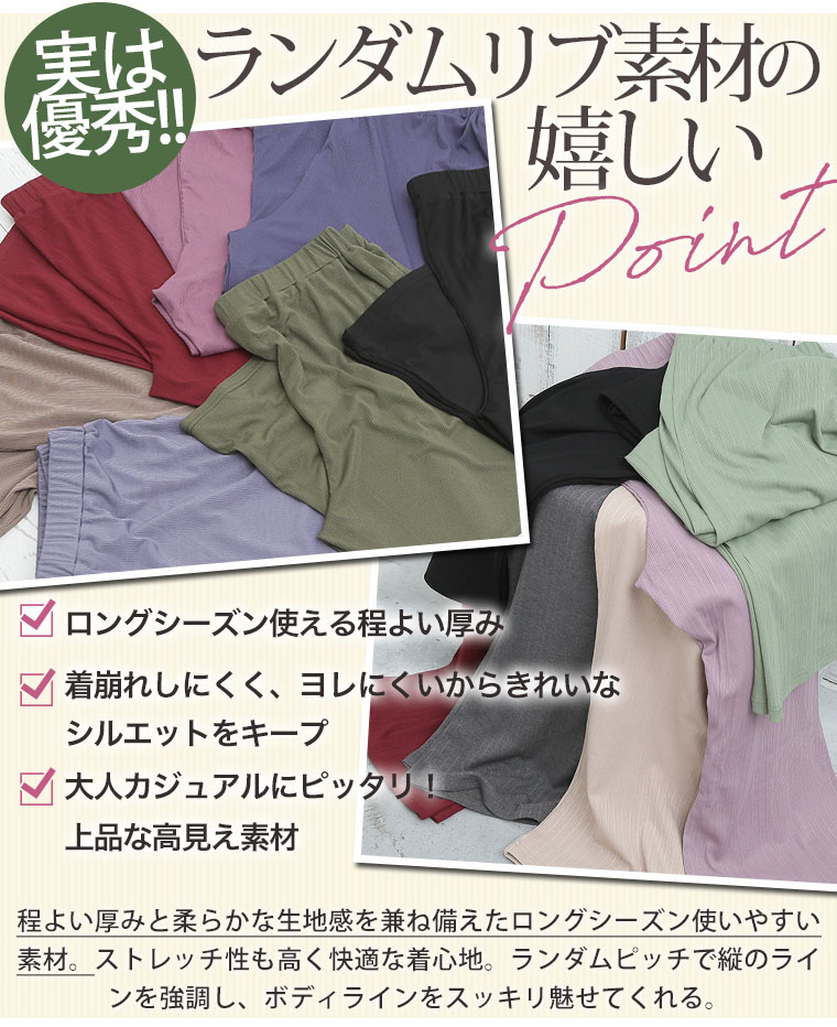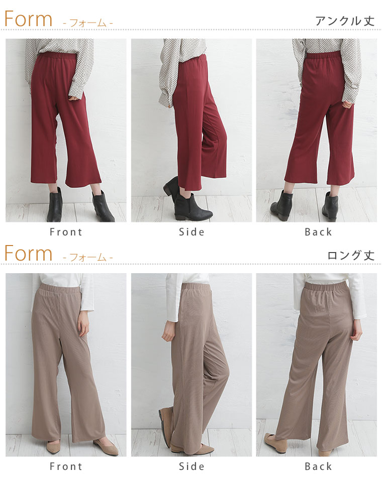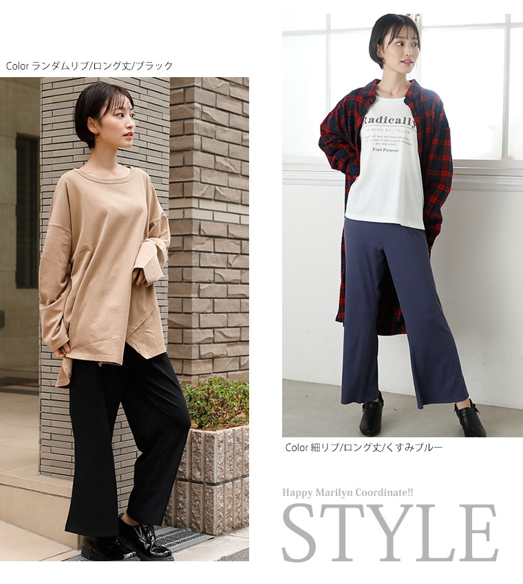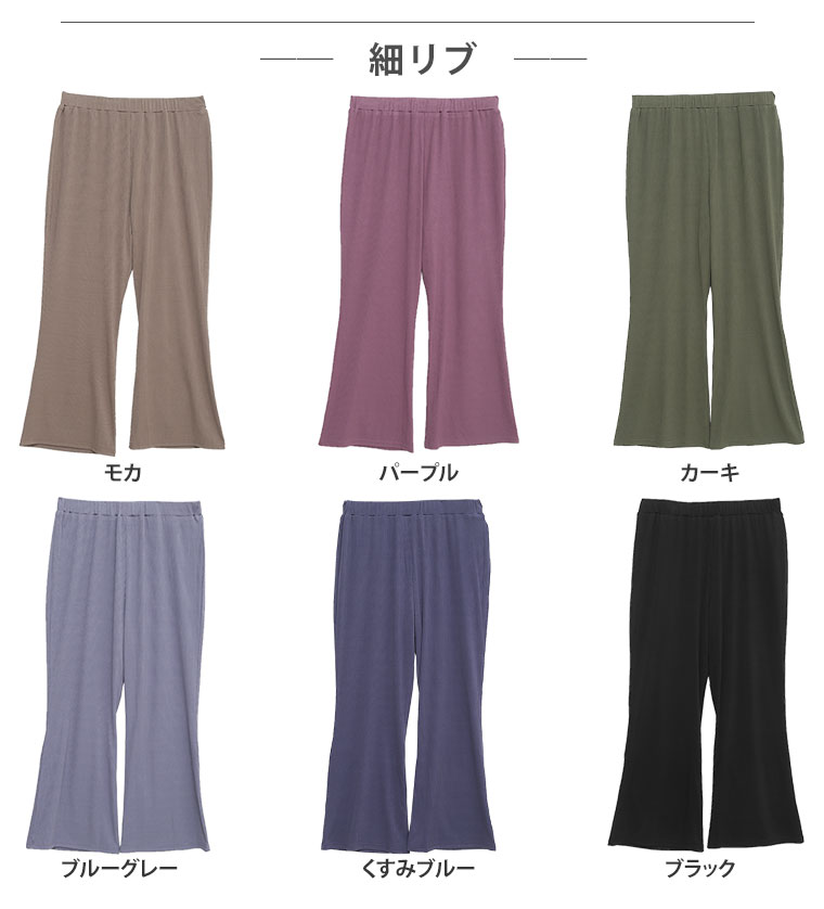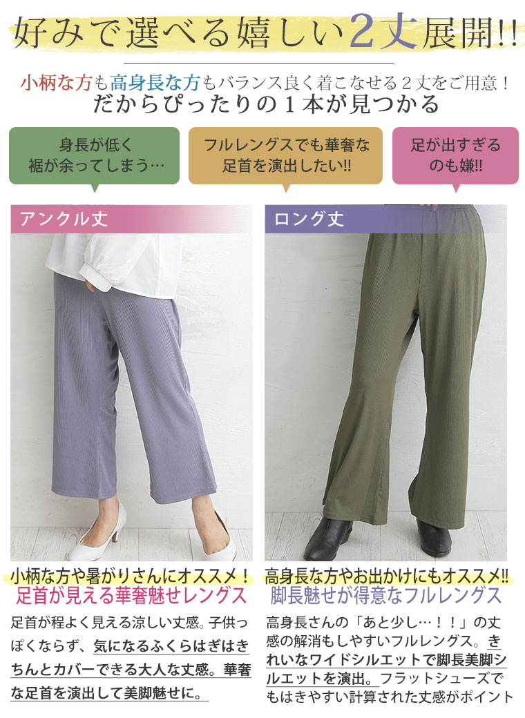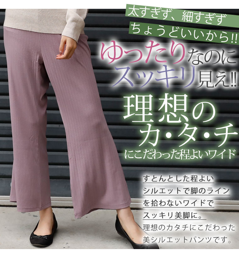 4. 大きいサイズ 選べる2丈&2素材 ゆったりなのに細魅せ! き楽っくす リブ セミワイドパンツ