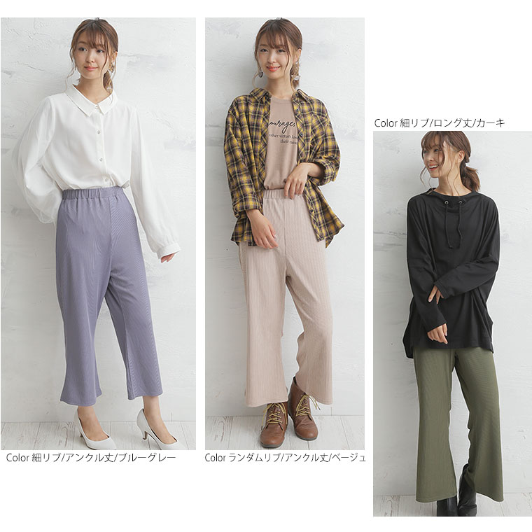 3. 大きいサイズ 選べる2丈&2素材 ゆったりなのに細魅せ! き楽っくす リブ セミワイドパンツ