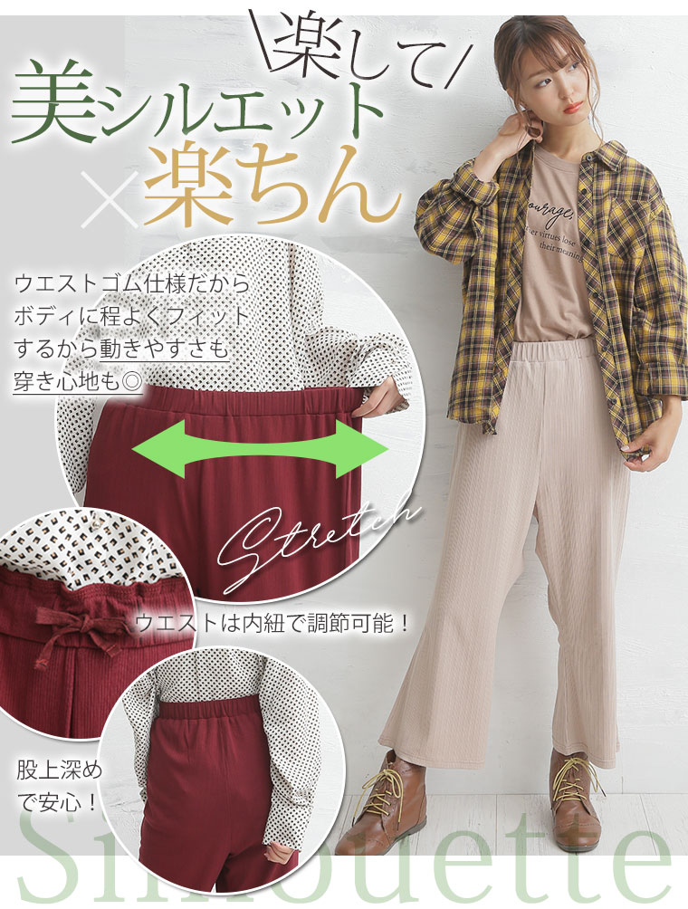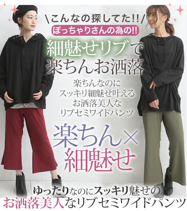 ゆったりなのに細魅せ!き楽っくすリブセミワイドパンツ