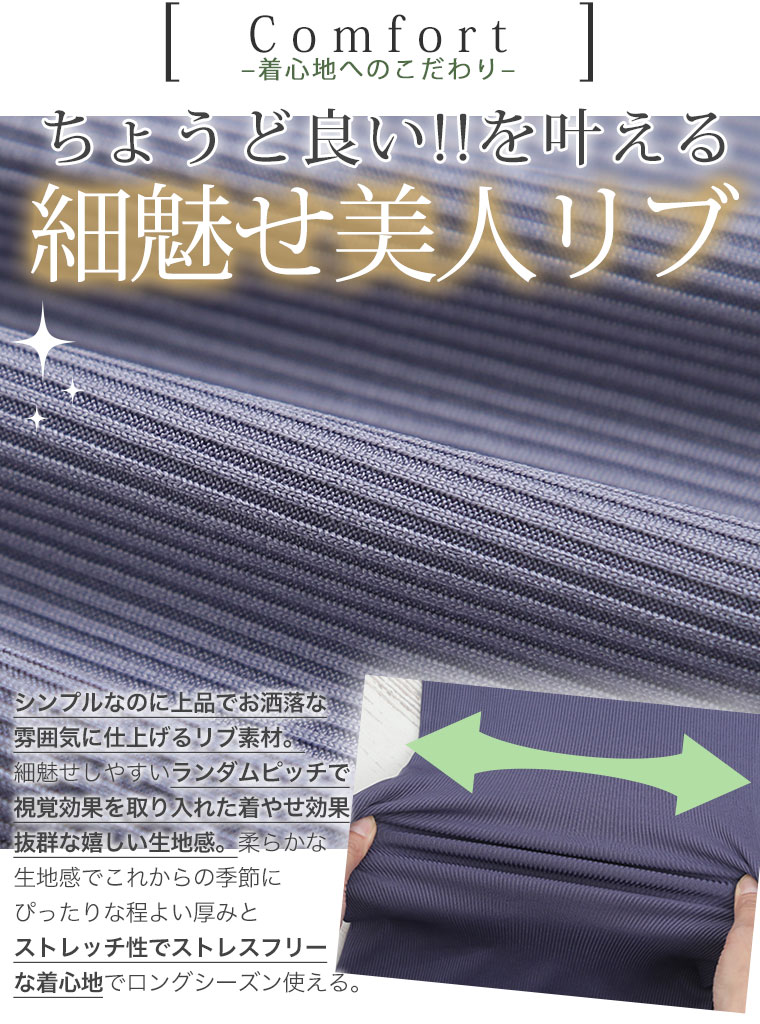 • 細リブ/くすみブルー