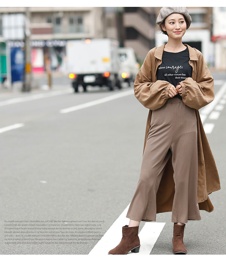 コーデ商品…(細リブ/アンクル丈/モカ)シャツ(ランダムリブ/ロング丈/スモークパープル)カーデ