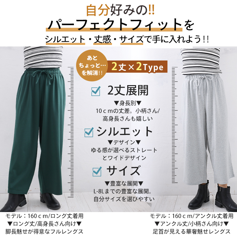 大きいサイズ 新タイプ・新色追加!! 選べる身長別&デザイン ゆるっと楽ちんミニ裏毛 ストレートパンツ/ワイドパンツ