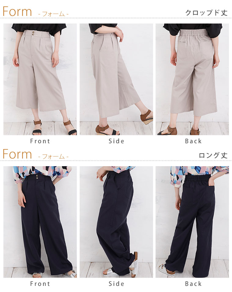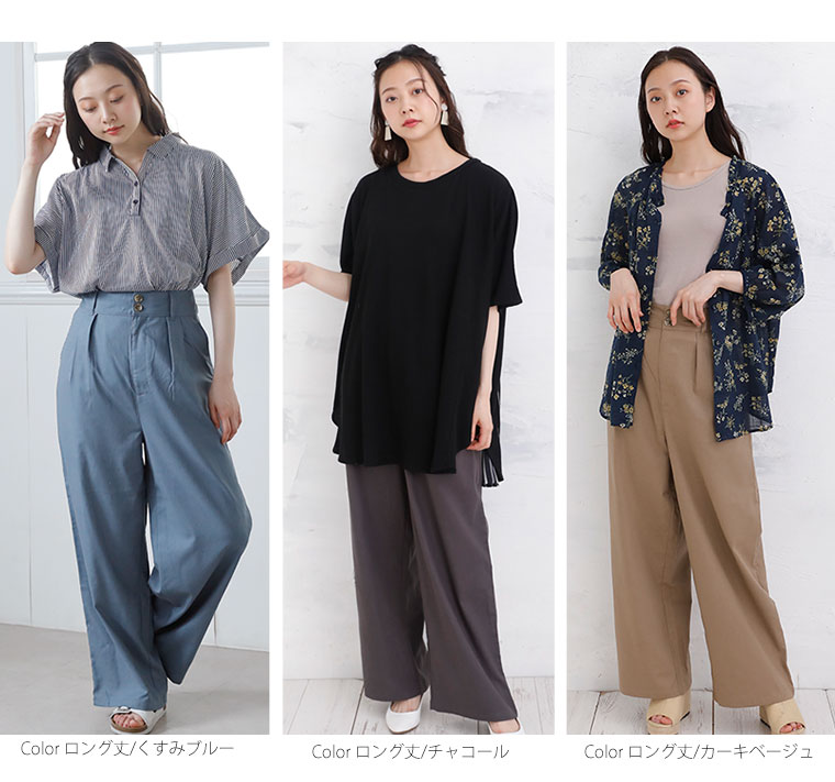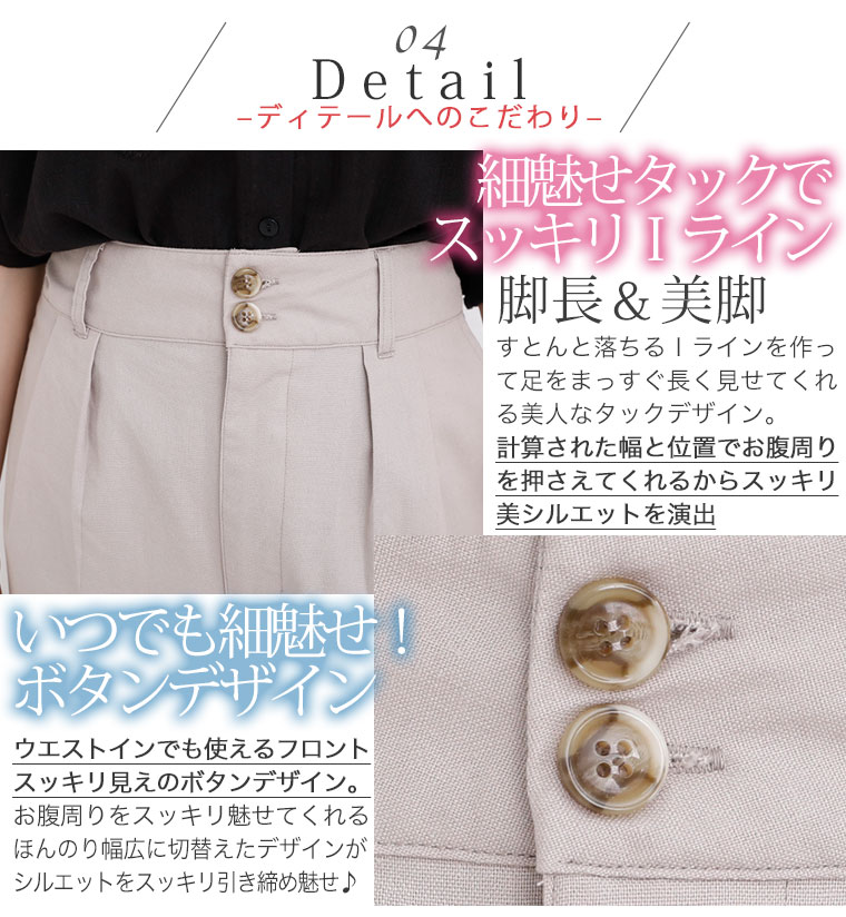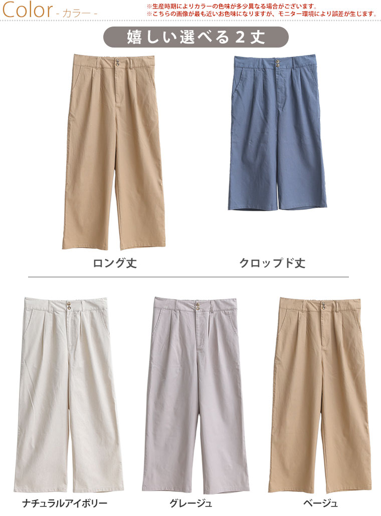 選べる身長別&2丈 いつでも美脚リネンタック入り綿麻ワイドパンツ