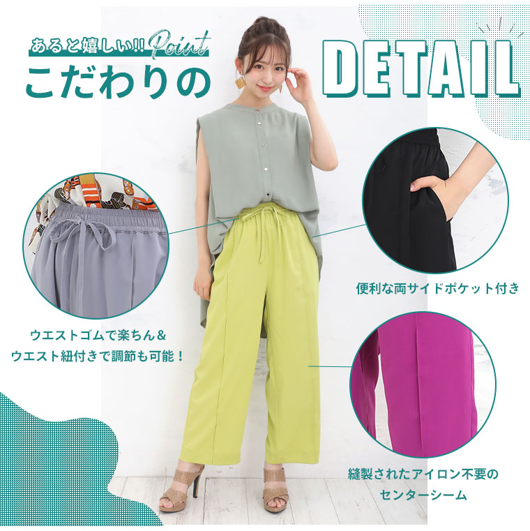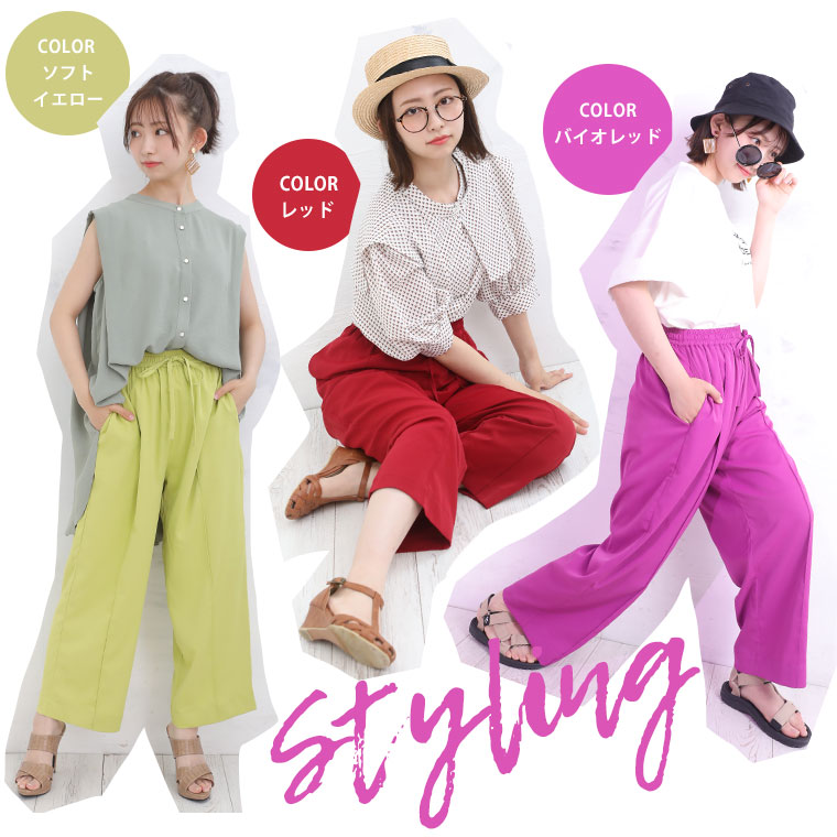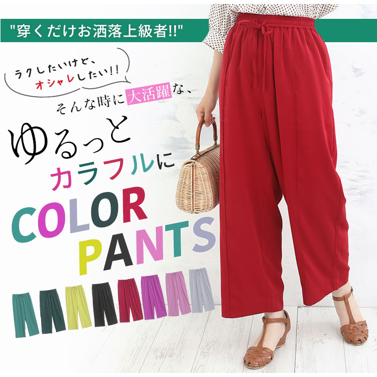 センターシームですっきり細魅せ!ゆるっと着れるカラフルパンツ