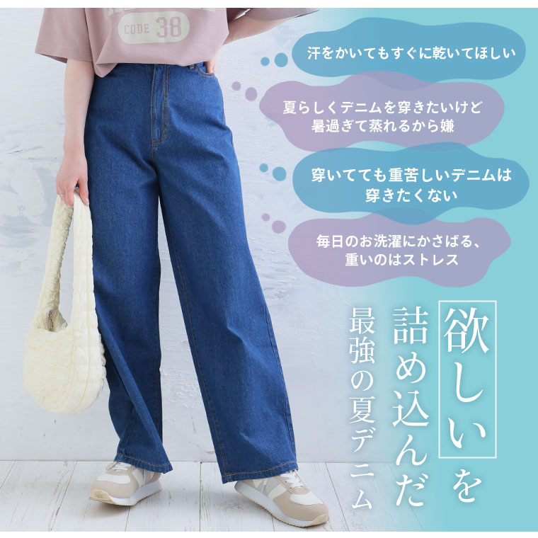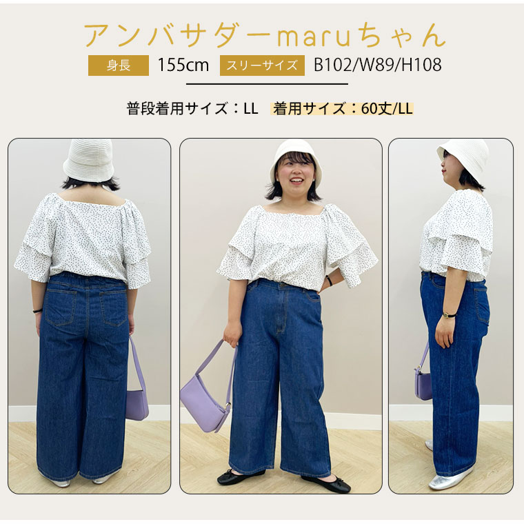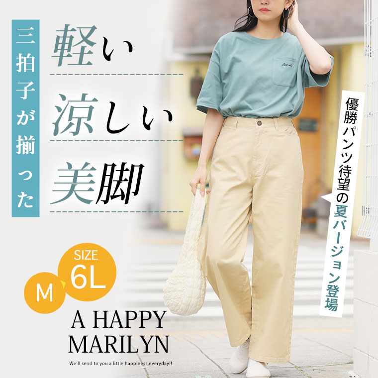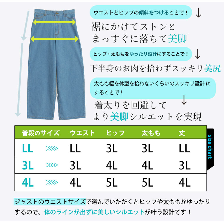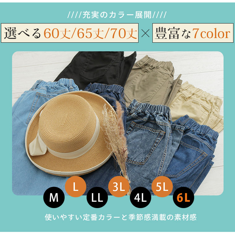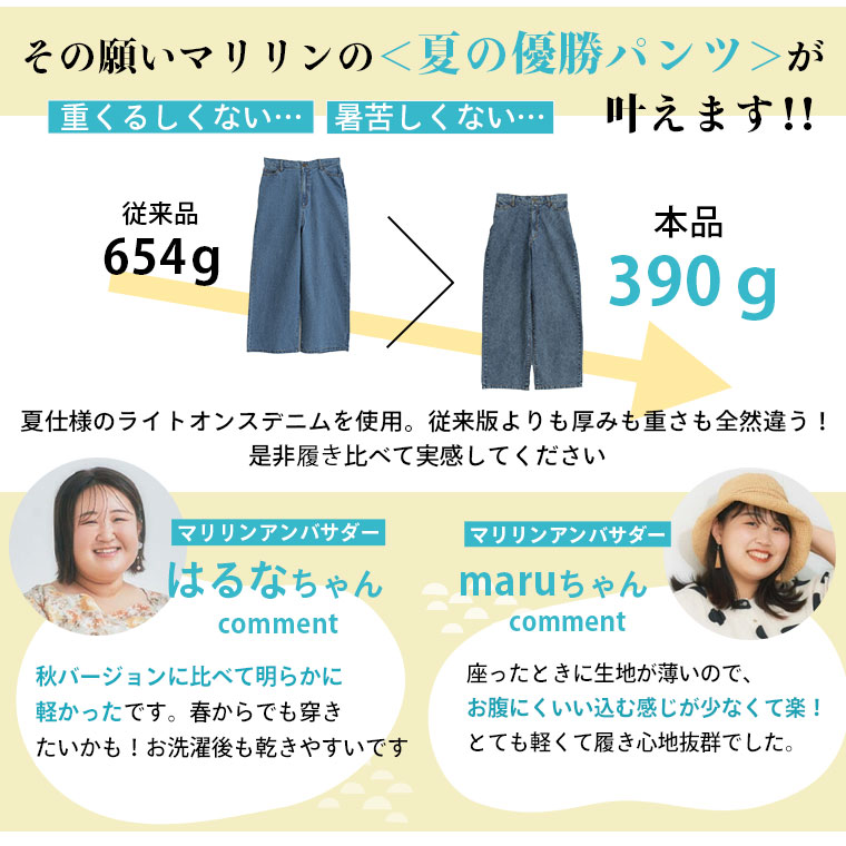 大きいサイズ ボトムス M L LL 3L 4L 5L 6L 7L 夏 綿 ウエストゴム ジーンズ ジーパン デニム ハッピーマリリン 新色・サイズ追加!!【夏でも穿きたい薄生地】美脚&美尻が叶う 優勝! 着痩せ ワイドパンツ 【着やせアイテム】