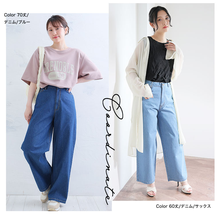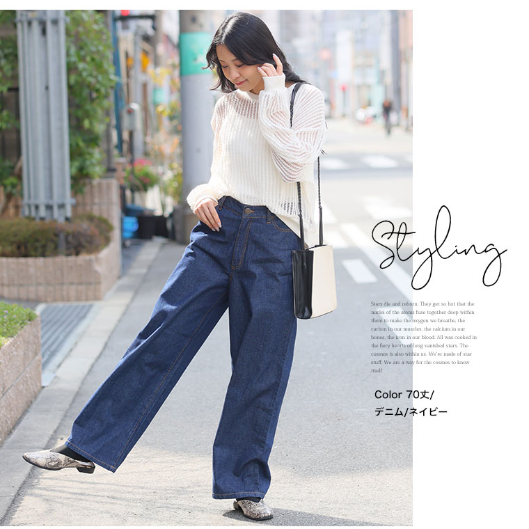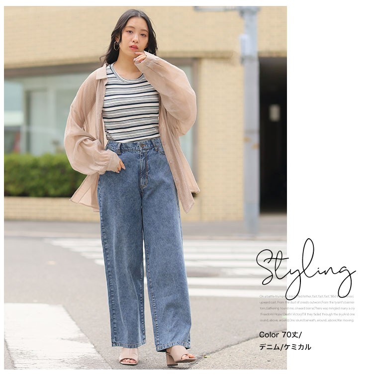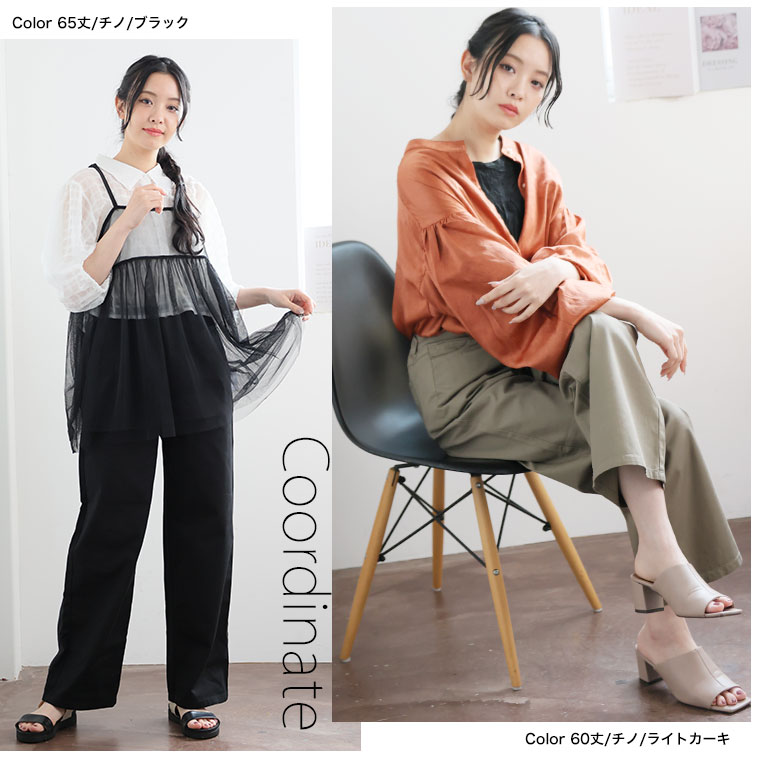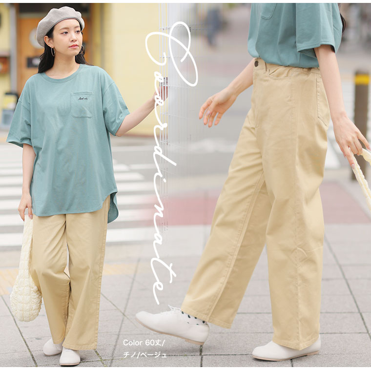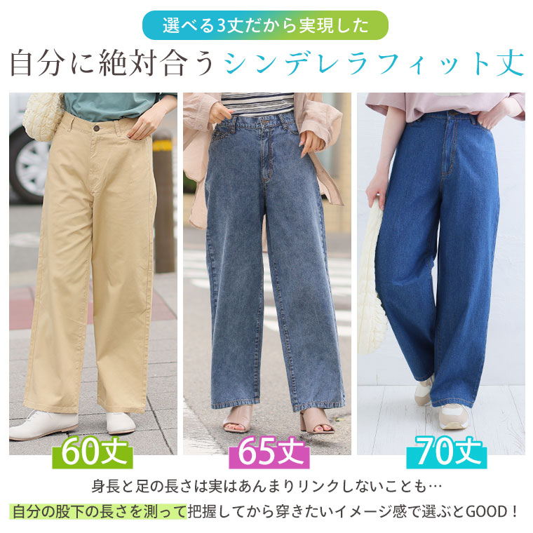 ■着用感:ちょうどいい、■着丈:足首、■バスト:-、■腕回り:-、■袖口:-、■袖丈:-、首回り-、■ウエスト:ちょうどいい、■ヒップ:ちょうどいい、■太もも:ゆったり ●流行りのワイドめなシルエットで美脚魅せしてくれました。夏に穿くなら、60丈で少し足首が見えるように穿くのが細見えしてくれて好みでした!