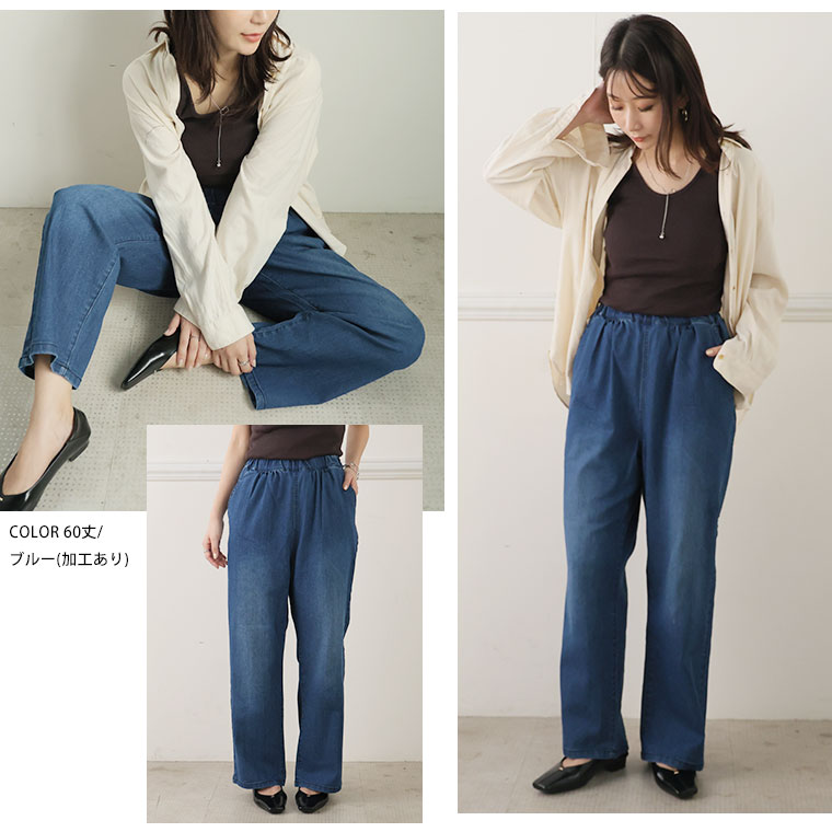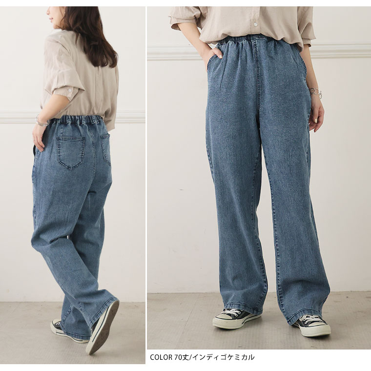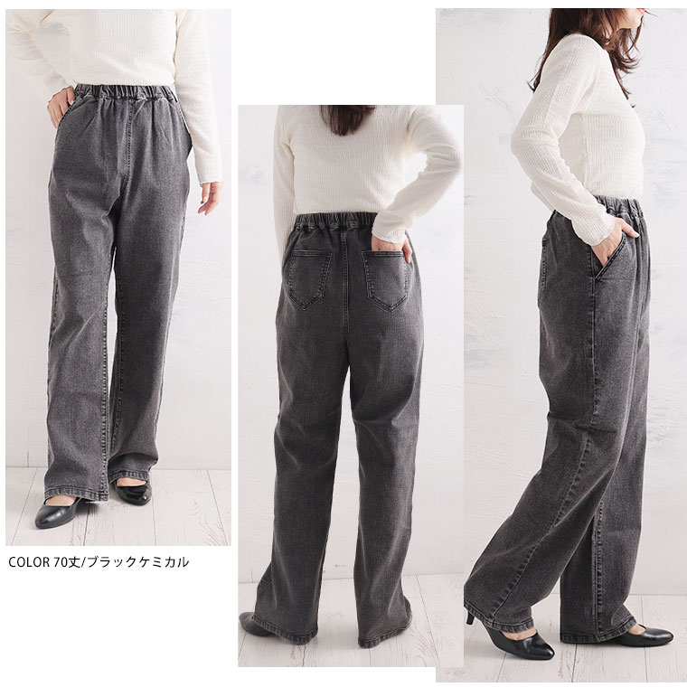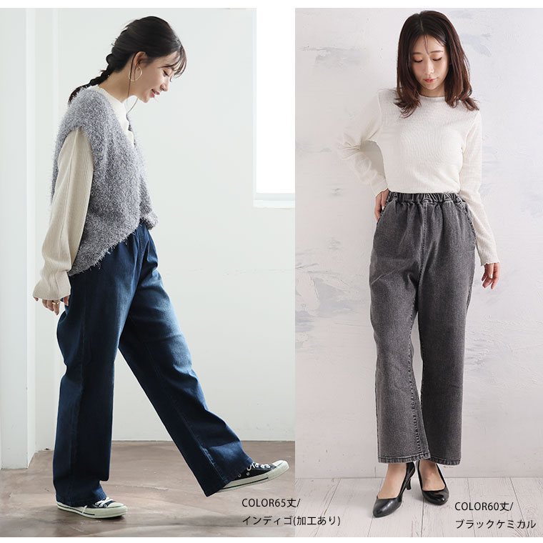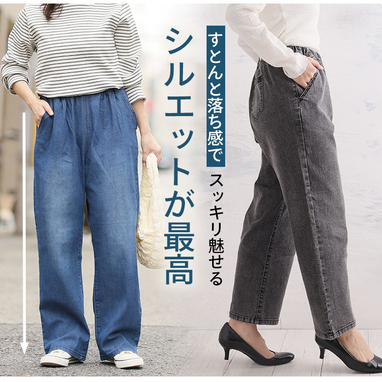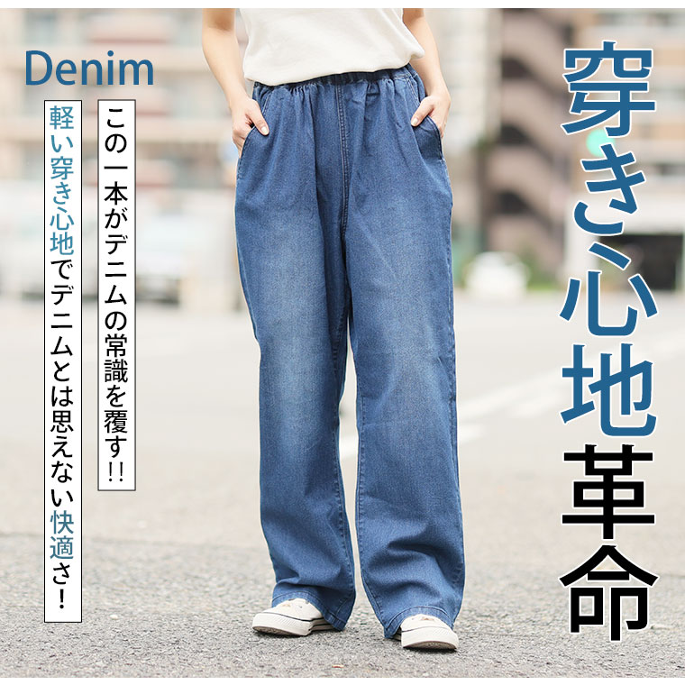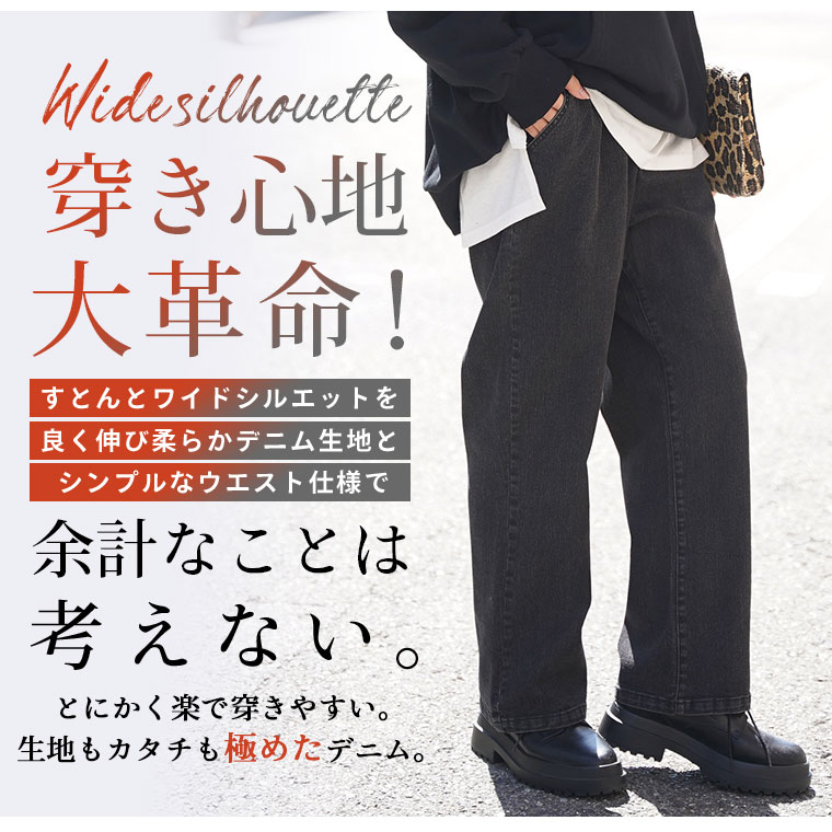 「極み」ストレッチですとんとすっきりデニムワイドパンツ