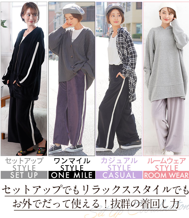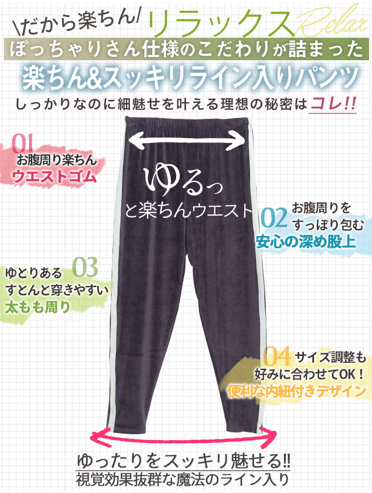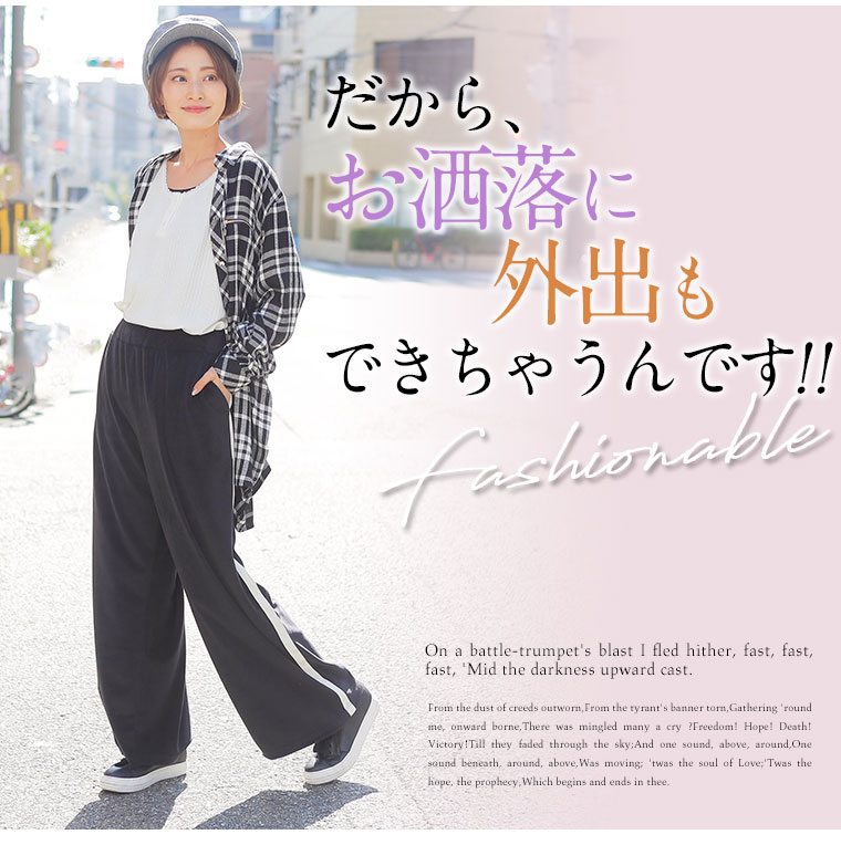 家でも外でも使える!リラックスに細魅せ楽ちんライン入りパンツ