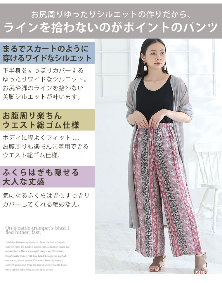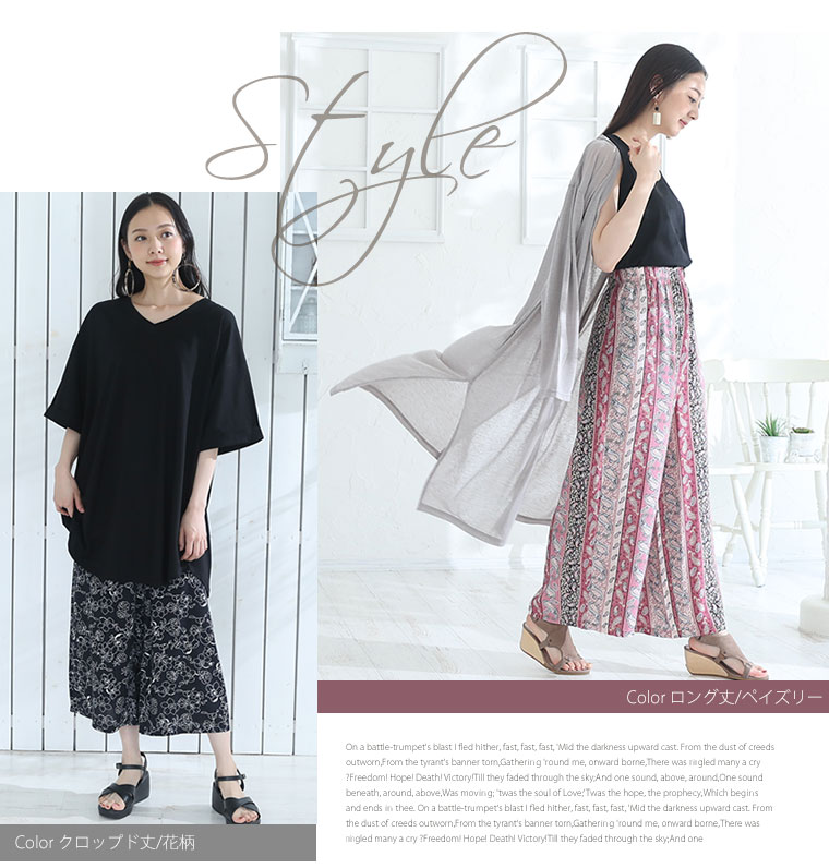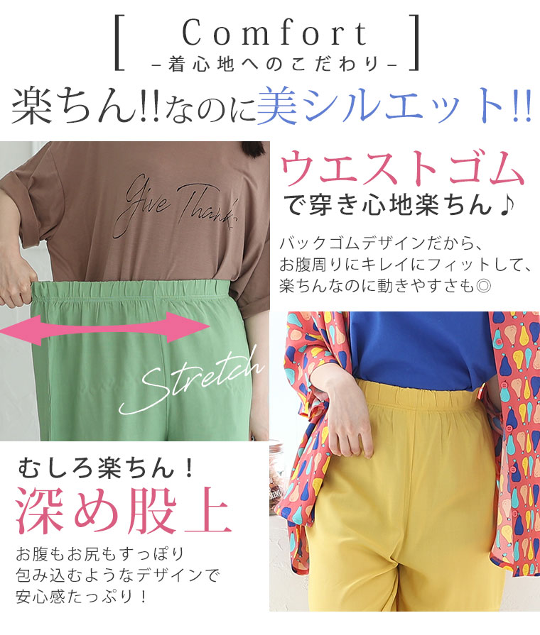 無地・柄から選べる 接触冷感 レーヨン 美シルエットパンツ