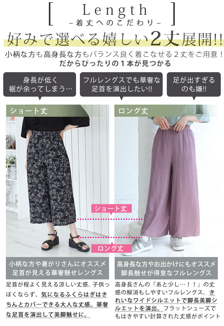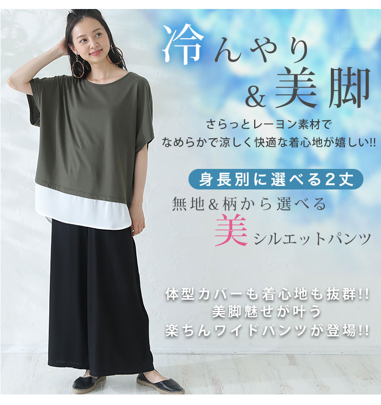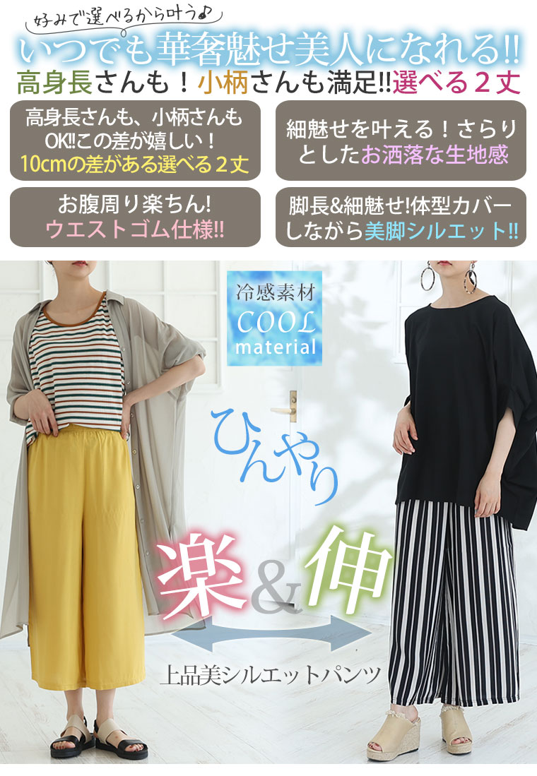 ひんやり楽ちん!身長別に選べる2丈 大人のワイドパンツ