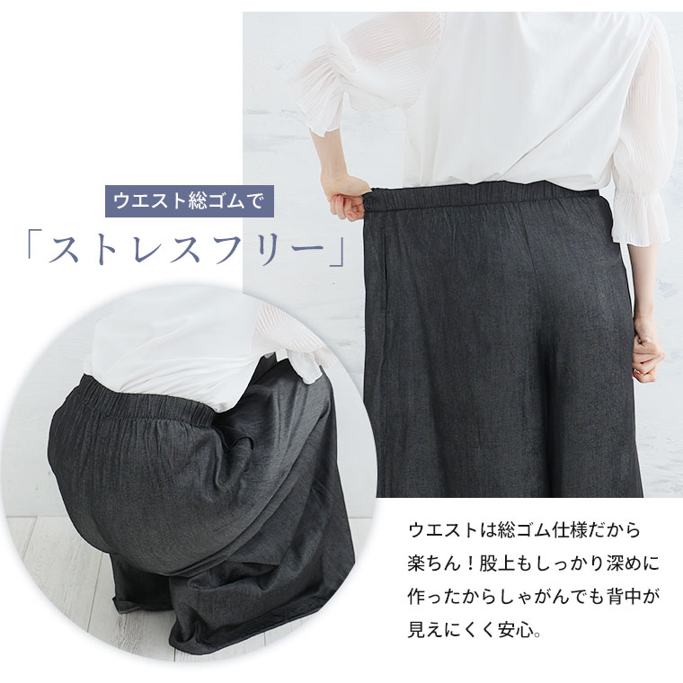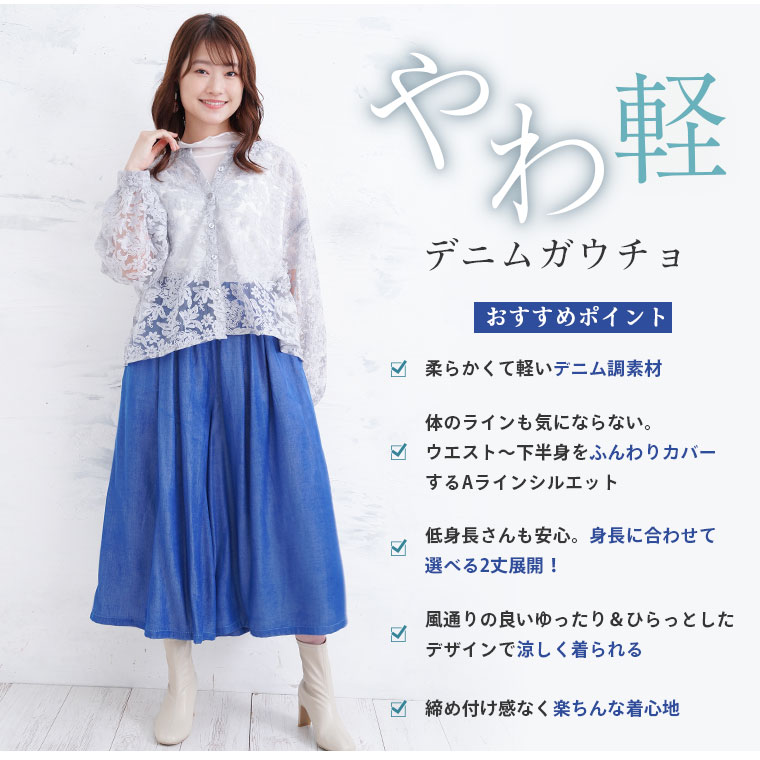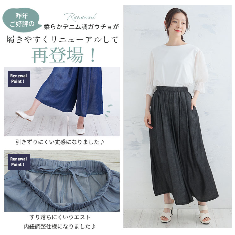 デニム調なのに柔らか素材!ふわとろストレスフリーガウチョ