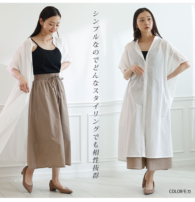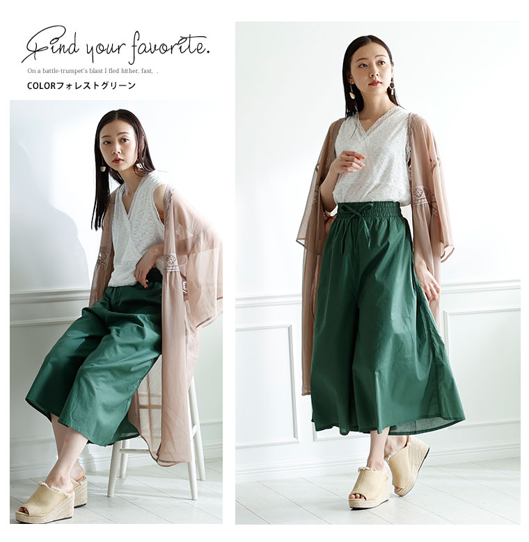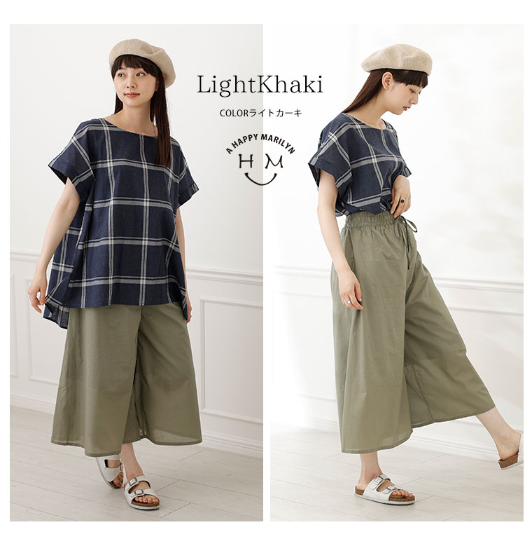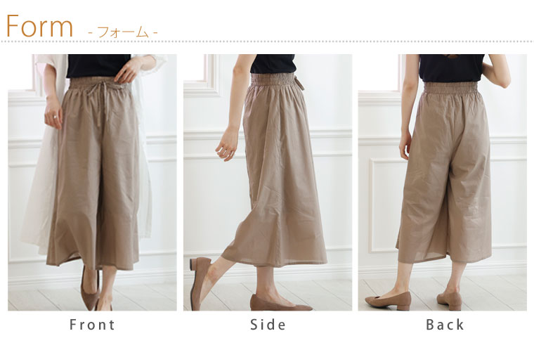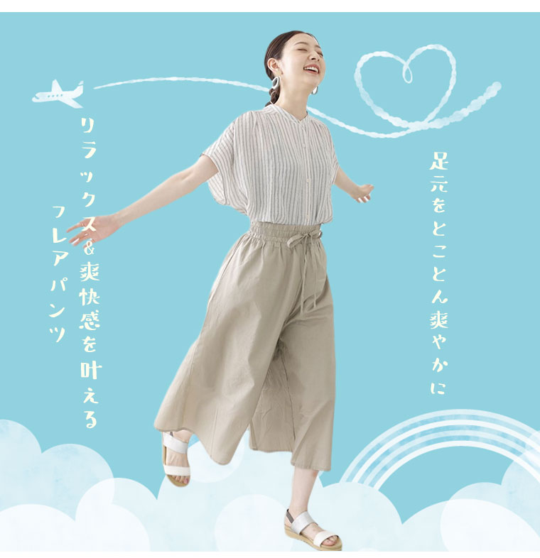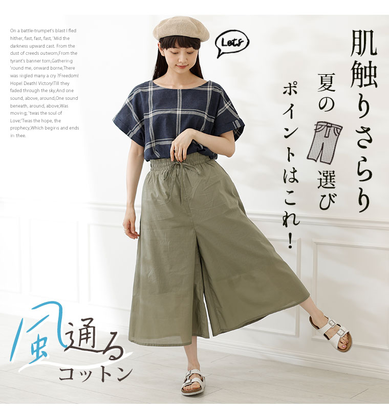 綿100%でさらりと涼やかに着こなせる楽ちんパンツ。