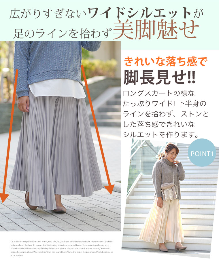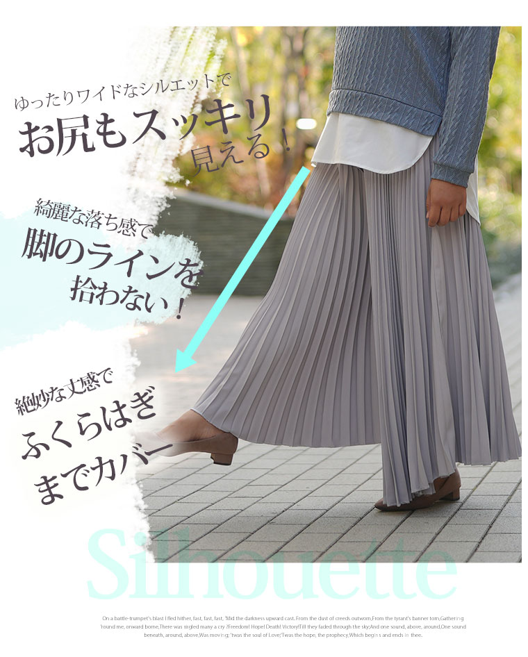 スカートの様で実はパンツ。美脚を叶えるひらりプリーツパンツ