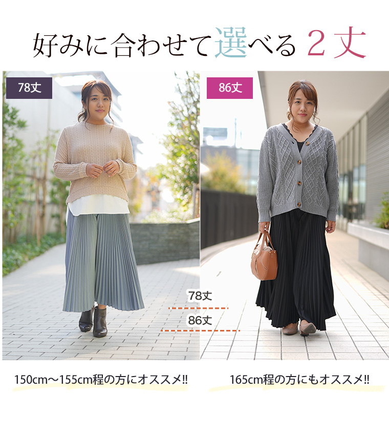 大きいサイズ 【hinaさん着用】身長別で丈が選べる プリーツ スカーチョ