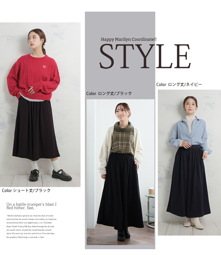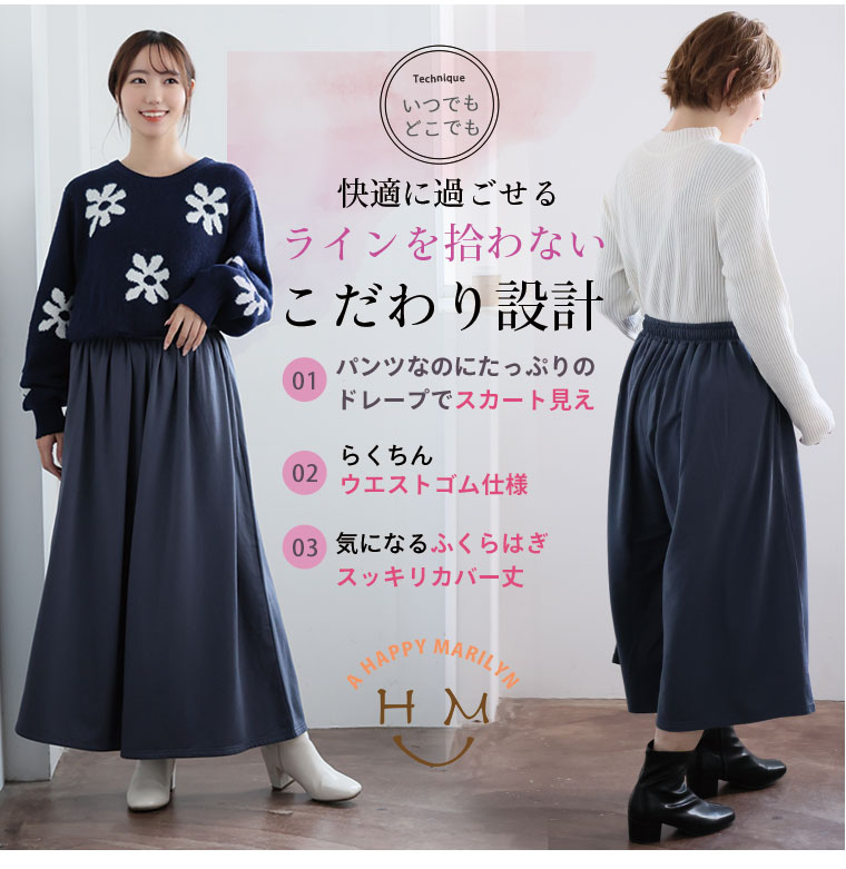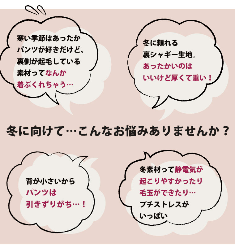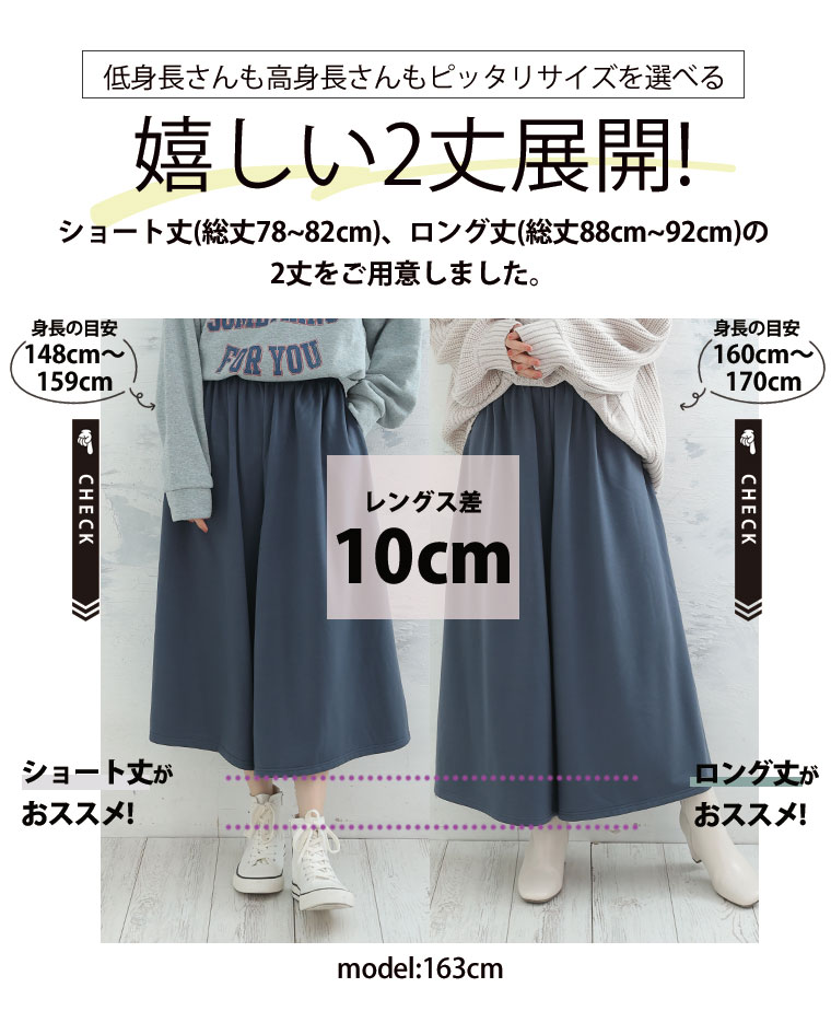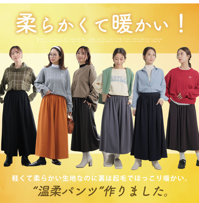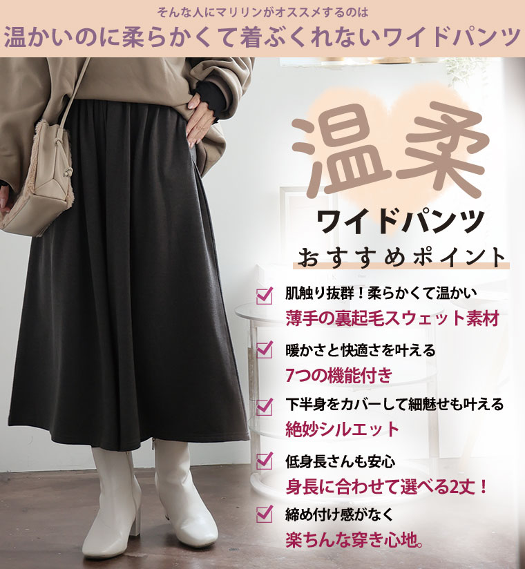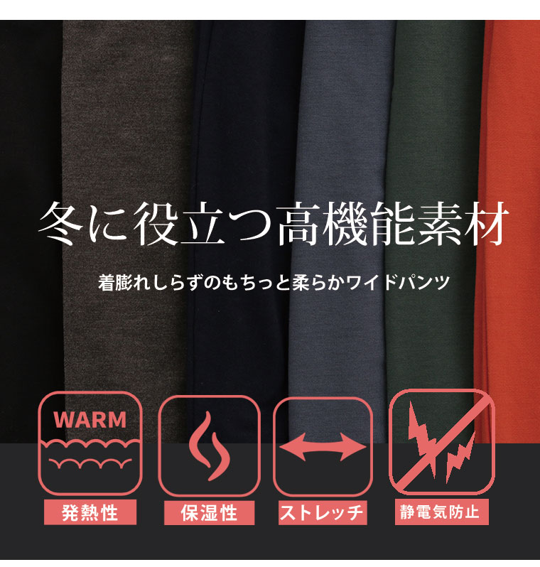 7つの機能付 身長別に選べる2丈。暖かいのに 着ぶくれないワイドパンツ