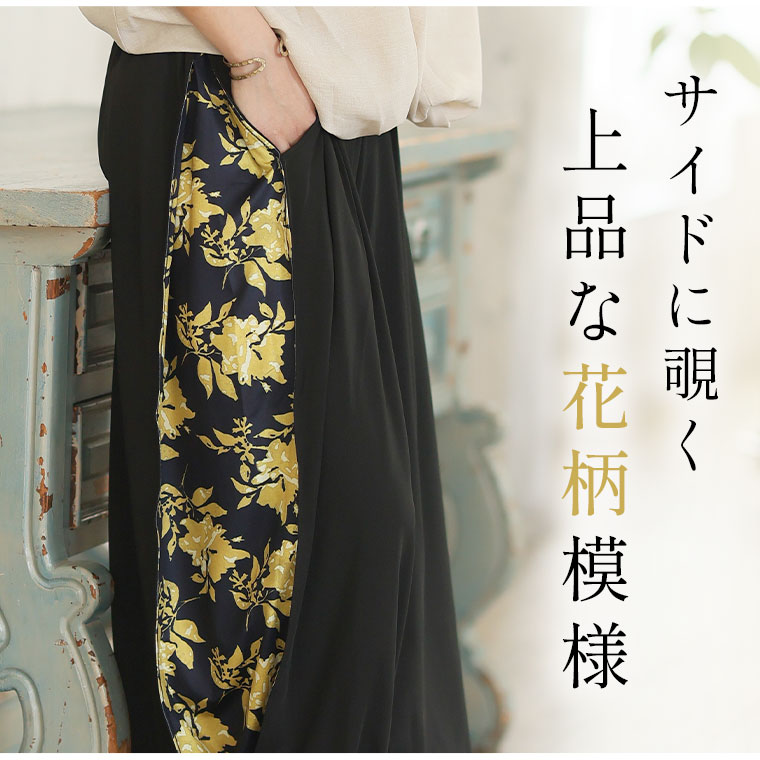 ストレッチ素材と上品花柄の個性派デザイン