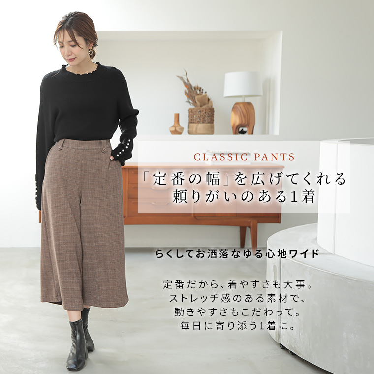 あったかいのにスッキリ綺麗TR両面起毛ストレッチワイドパンツ