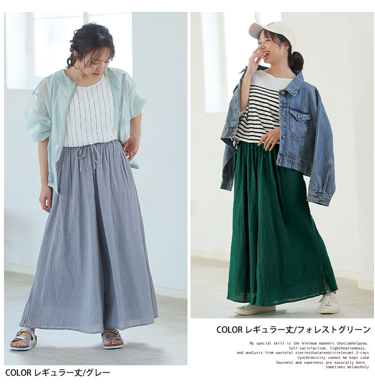 【風通るプレミアム】2丈から選べる綿楊柳ギャザーフレアスカンツ