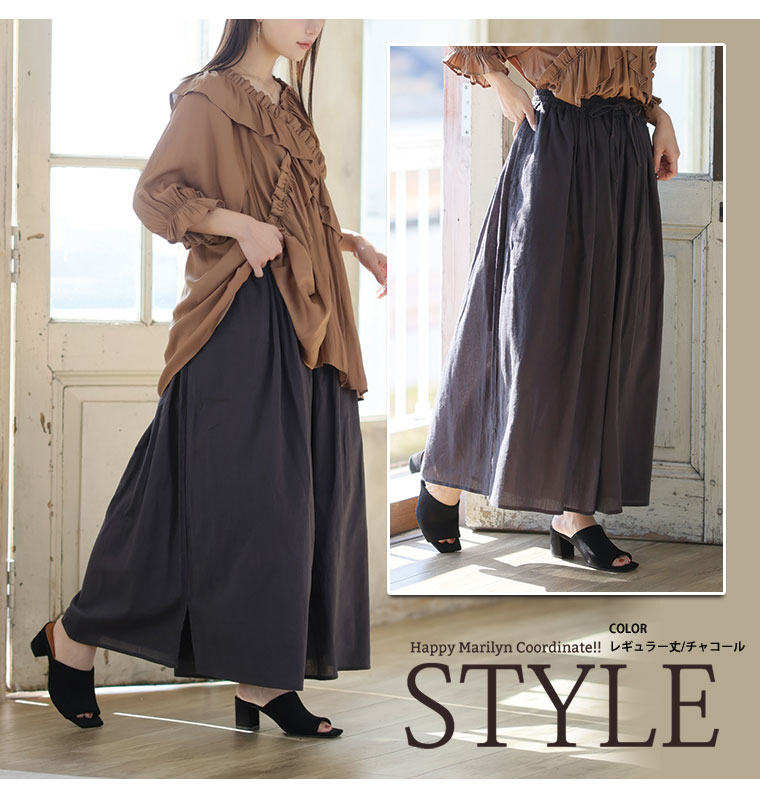 スカートにも見えるボリューム感が魅力のたっぷりワイドパンツ!!