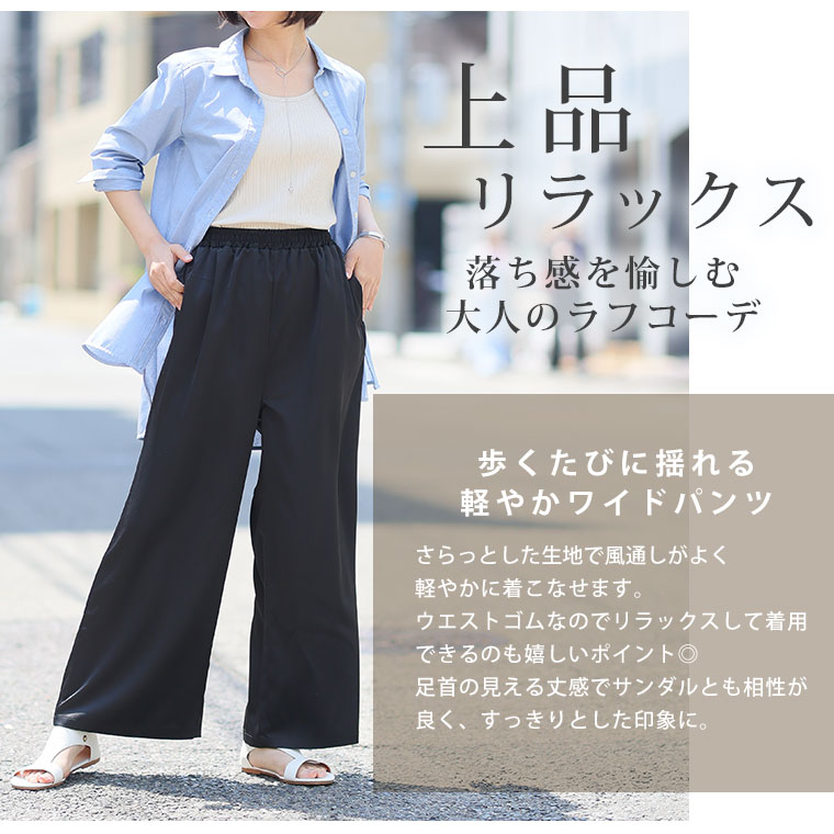 さらっと涼しい着心地で細魅せ叶えるワイドパンツ
