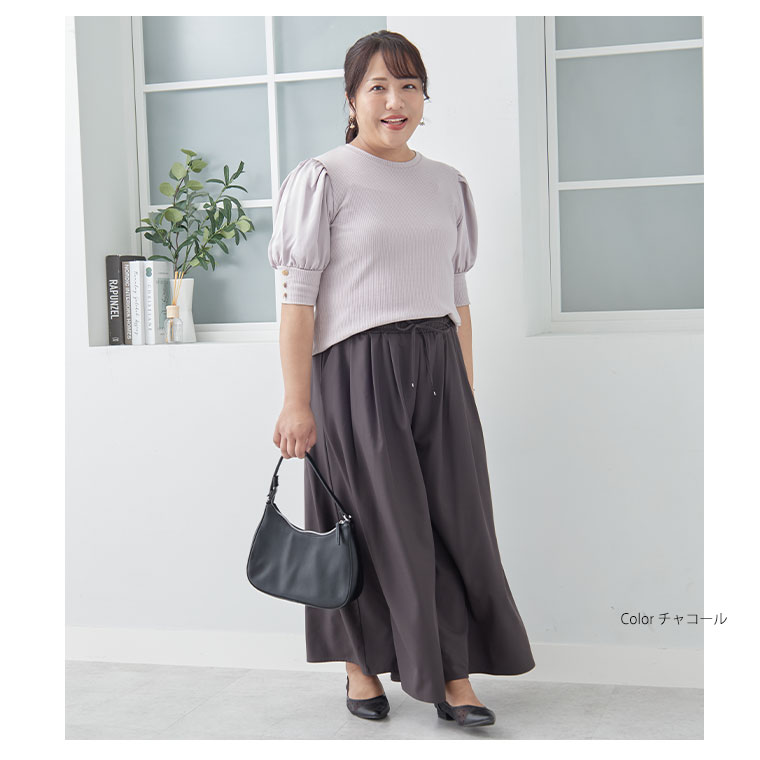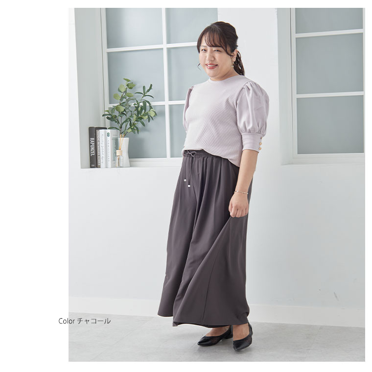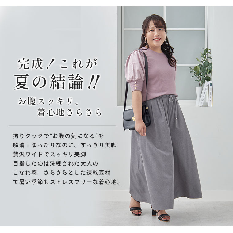 お腹まわりスッキリ!美脚ワイドパンツ
