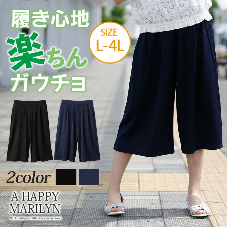 落ち感のあるとろみ素材でシルエットきれい♪穿き心地◎の無地ガウチョパンツ